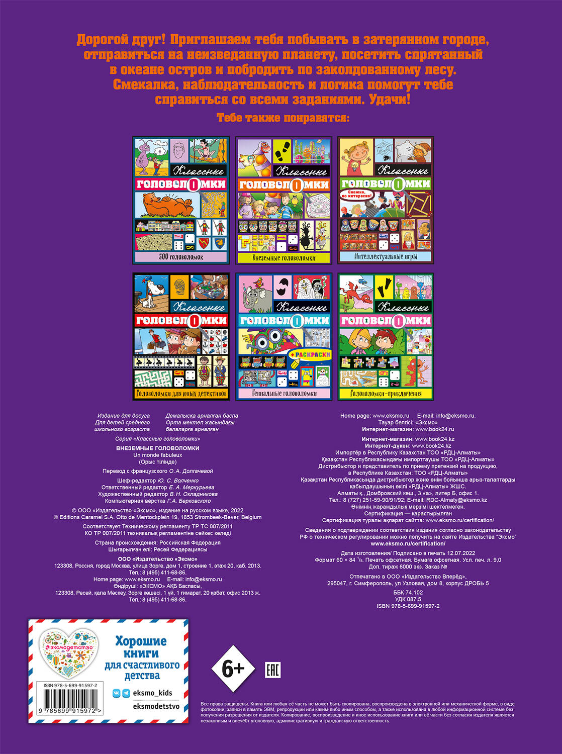 Пора отправиться в необычное путешествие и забыть, что такое скука! Приглашаем вас побывать в затерянном городе, отправиться на неизведанную планету, побродить по стране эрудированных монстриков и поучаствовать в настоящих детективных расследованиях. Вас ждут увлекательные задания на смекалку, наблюдательность и логику! А смелые герои этой книге помогут вам пройти весь путь до конца, чтобы получить не только радость от путешествия, но и новые навыки. Смело отправляйтесь в путь!