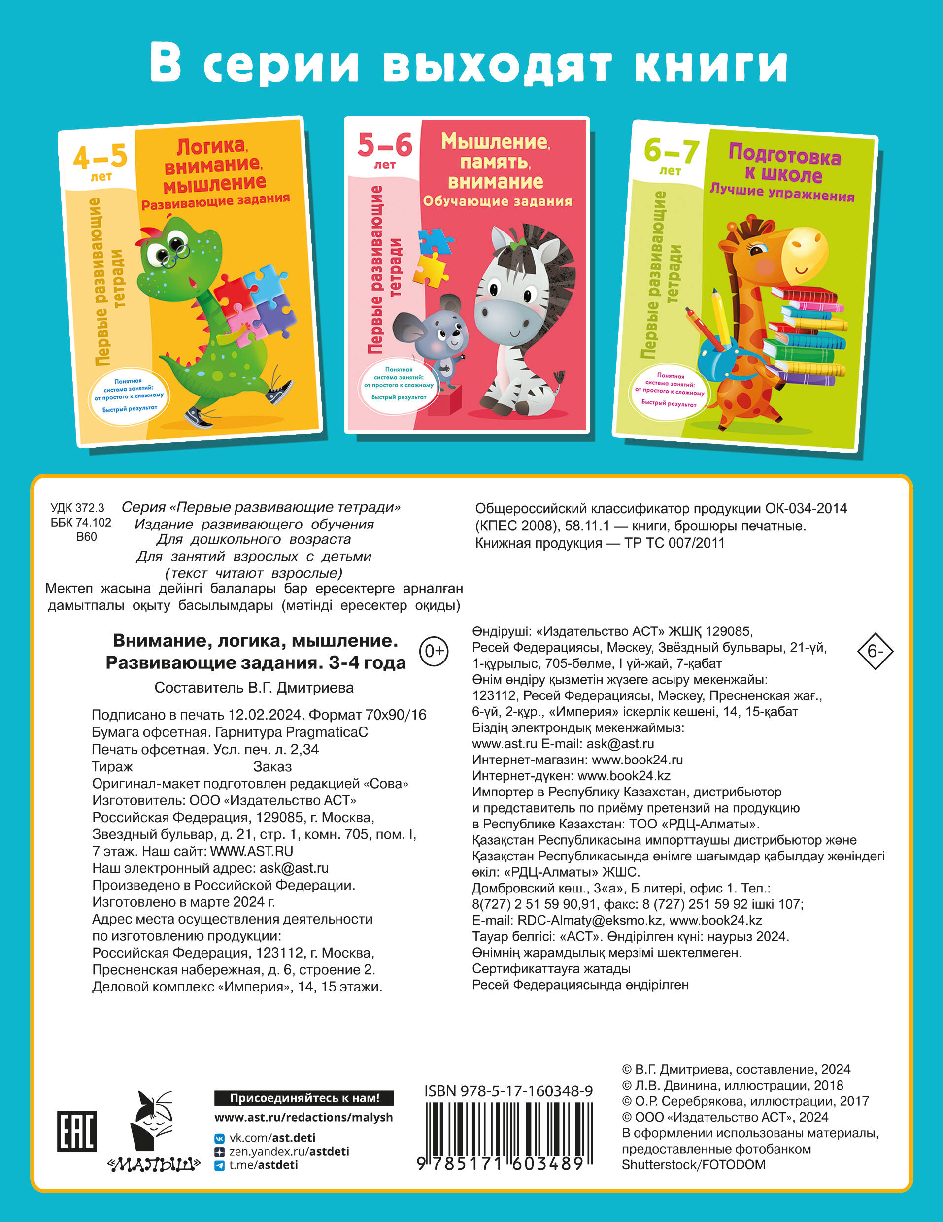 Аннотация: Внимание, логика, мышление. Развивающие задания. 3-4 года