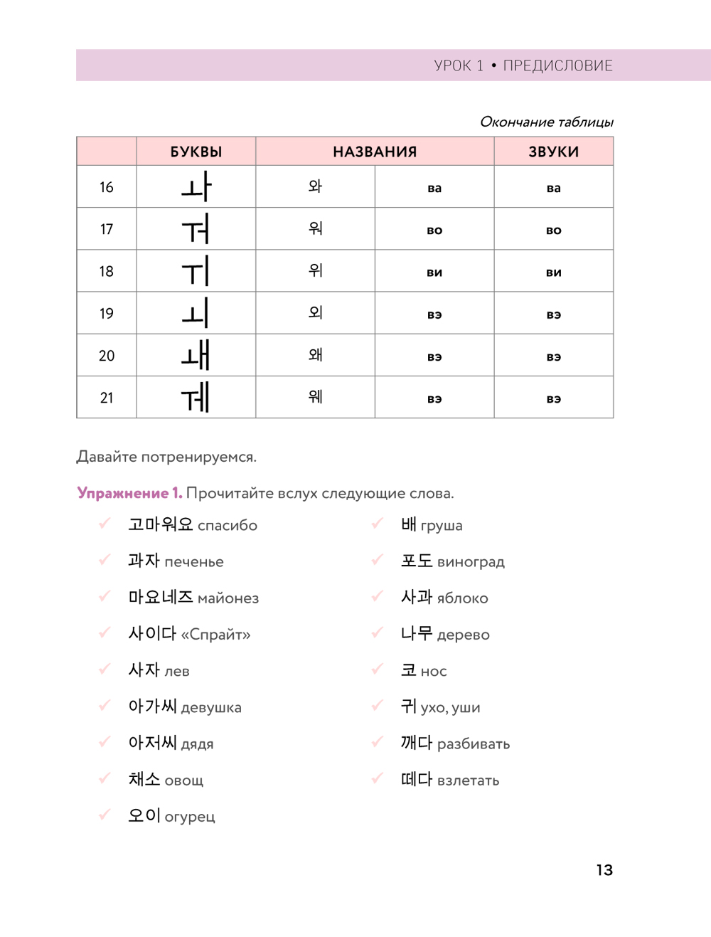 Самоучитель корейского языка от носителя и блогера Сон Минсон содержит актуальную лексику, доступную грамматику и много полезных упражнений. Пособие строится на авторской методике опытного педагога-исследователя в Институте короля Седжона при Министерстве культуры, спорта и туризма. Эффективность подтверждена более чем 330 тысячами подписчиков YouTube-канала «Учитель корейского, Соня». Книга поможет как начинающим изучать язык, так и тем, кто хочет усовершенствовать свои навыки.| Издательство | Эксмо |