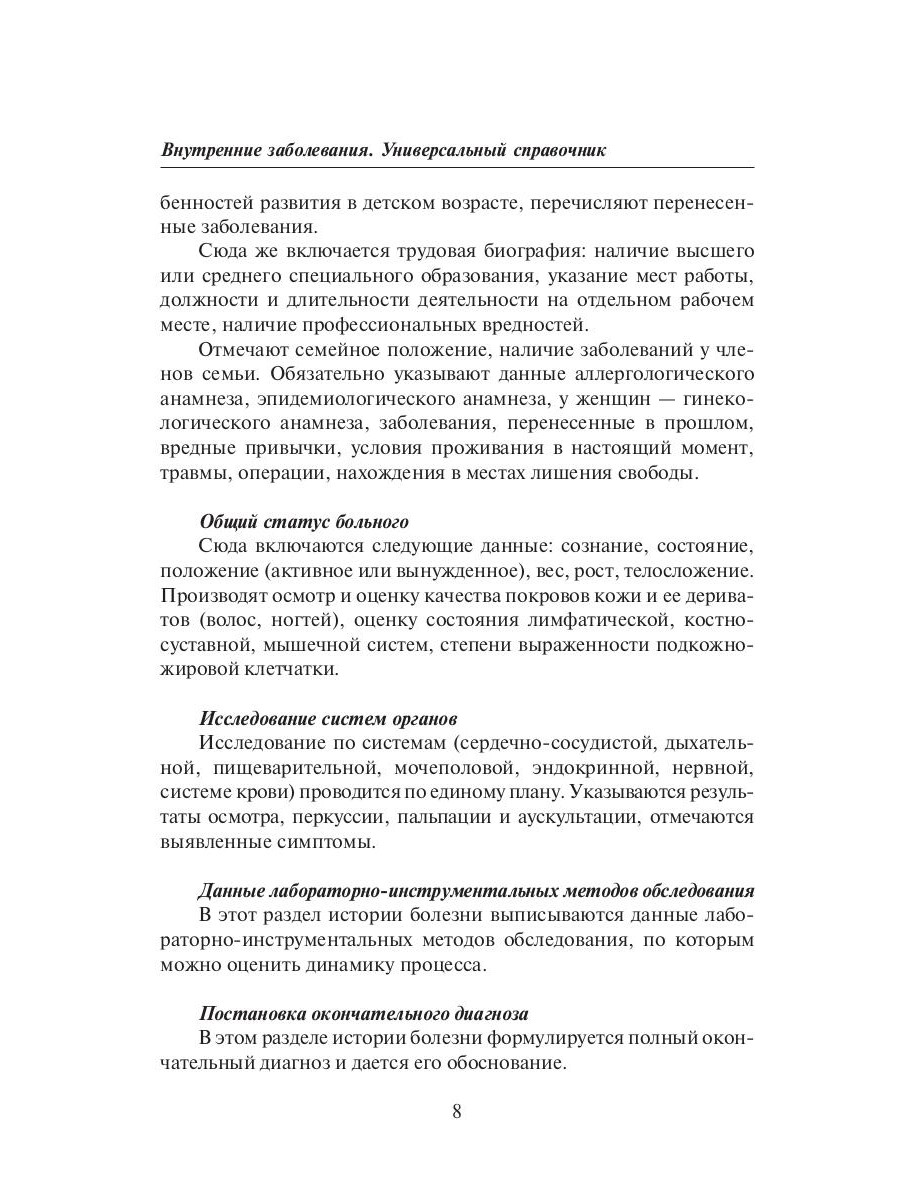 Данное издание предлагает читателю краткое структурированное изложение основного материала по внутренним болезням человека. Представленный материал поможет читателю получить предварительный круг знаний по этому предмету.