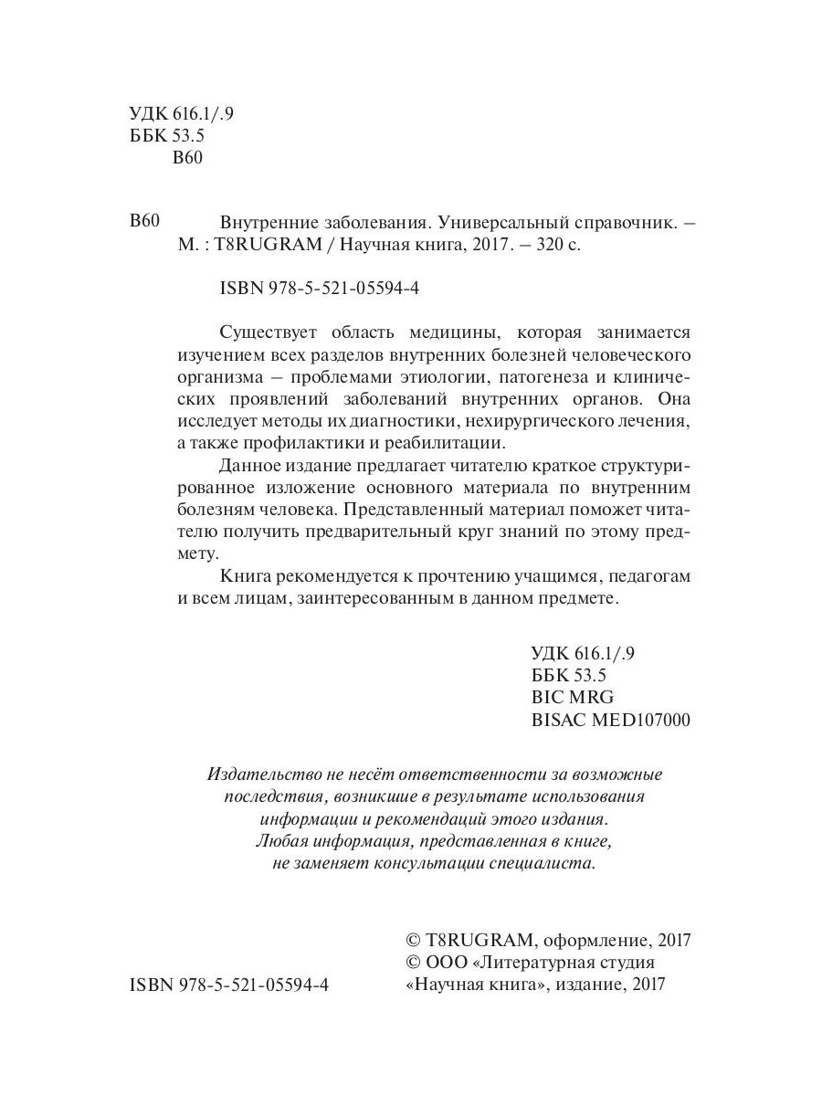 Аннотация: Внутренние заболевания. Универсальный справочник