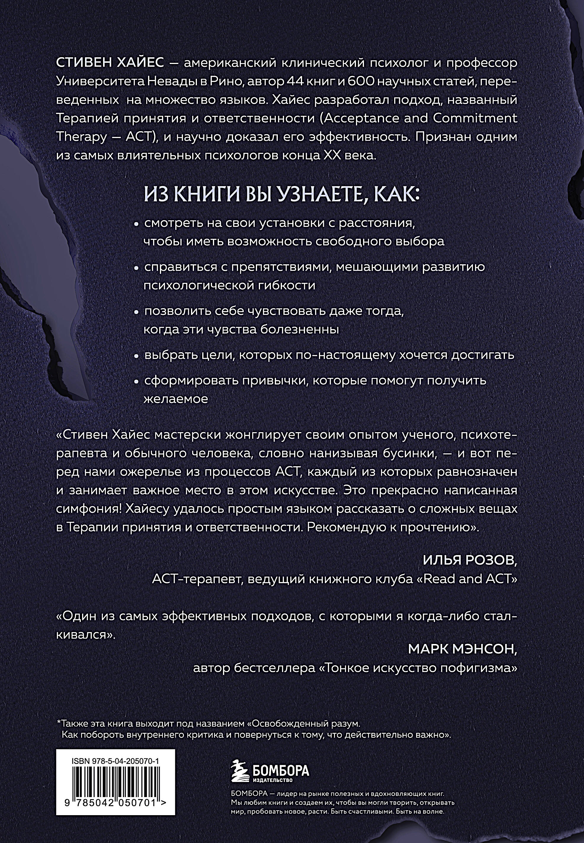 Свою книгу психолог Стивен Хайес посвятил тем, кто хочет изменить жизнь к лучшему. Основатель терапии принятия и ответственности обнаружил, что человека ведет Внутренний Диктатор. Выход из-под влияния тирана освобождает разум, и только так у человека появляется возможность управлять своими эмоциями и чувствами, а вместе с этим в лучшую сторону меняется качество жизни. Книга построена на ярких примерах жизненного и профессионального опыта психолога, а также дает работающие практики для преобразования своей жизни. Из книги вы узнаете, как: - смотреть на свои установки с расстояния, чтобы иметь возможность свободного выбора; - справиться с препятствиями, мешающими развитию психологической гибкости; - позволить себе чувствовать даже тогда, когда чувства болезненны; - выбрать цели, которых по-настоящему хочется достигать; - сформировать привычки, которые помогут достичь желаемого. Также эта книга выходит под названием «Освобожденный разум. Как побороть внутреннего критика и повернуться к тому, что действительно важно».| Издательство | ООО "Издательство "Эксмо" |
