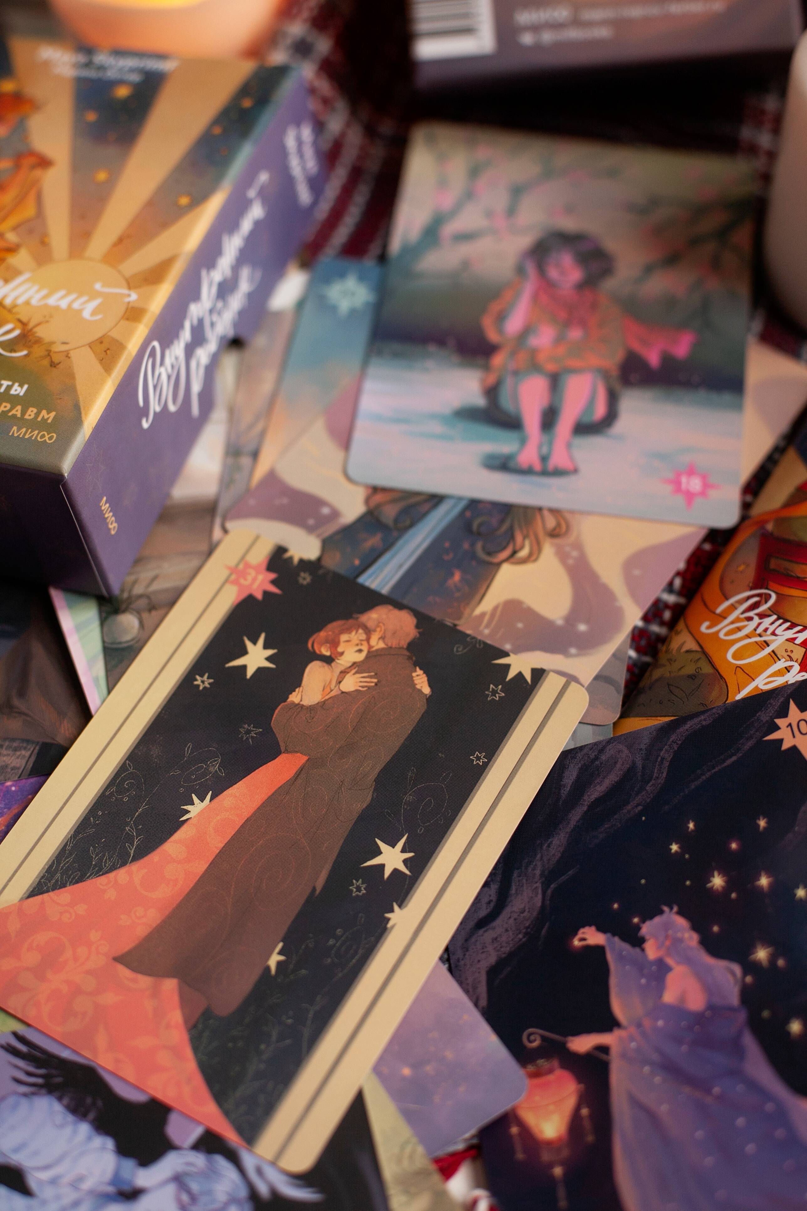 Метафорические ассоциативные карты о внутреннем ребенке и исцелении детских травм с иллюстрациями Maya Skyprimf и руководством от практикующего психолога Марины Остер.