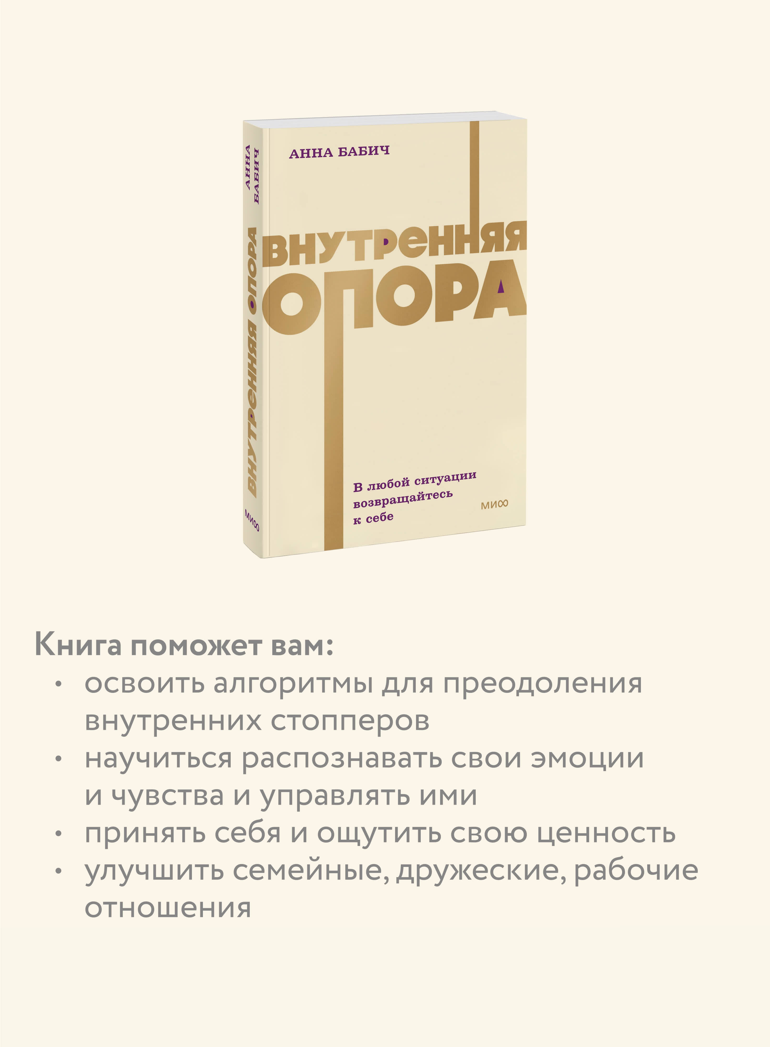 56 точек опоры для обретения внутренней гармонии От психолога и популярного блогера с аудиторией более 120 тыс. человек В удобном формате покетбука| Издательство | МИФ ООО |