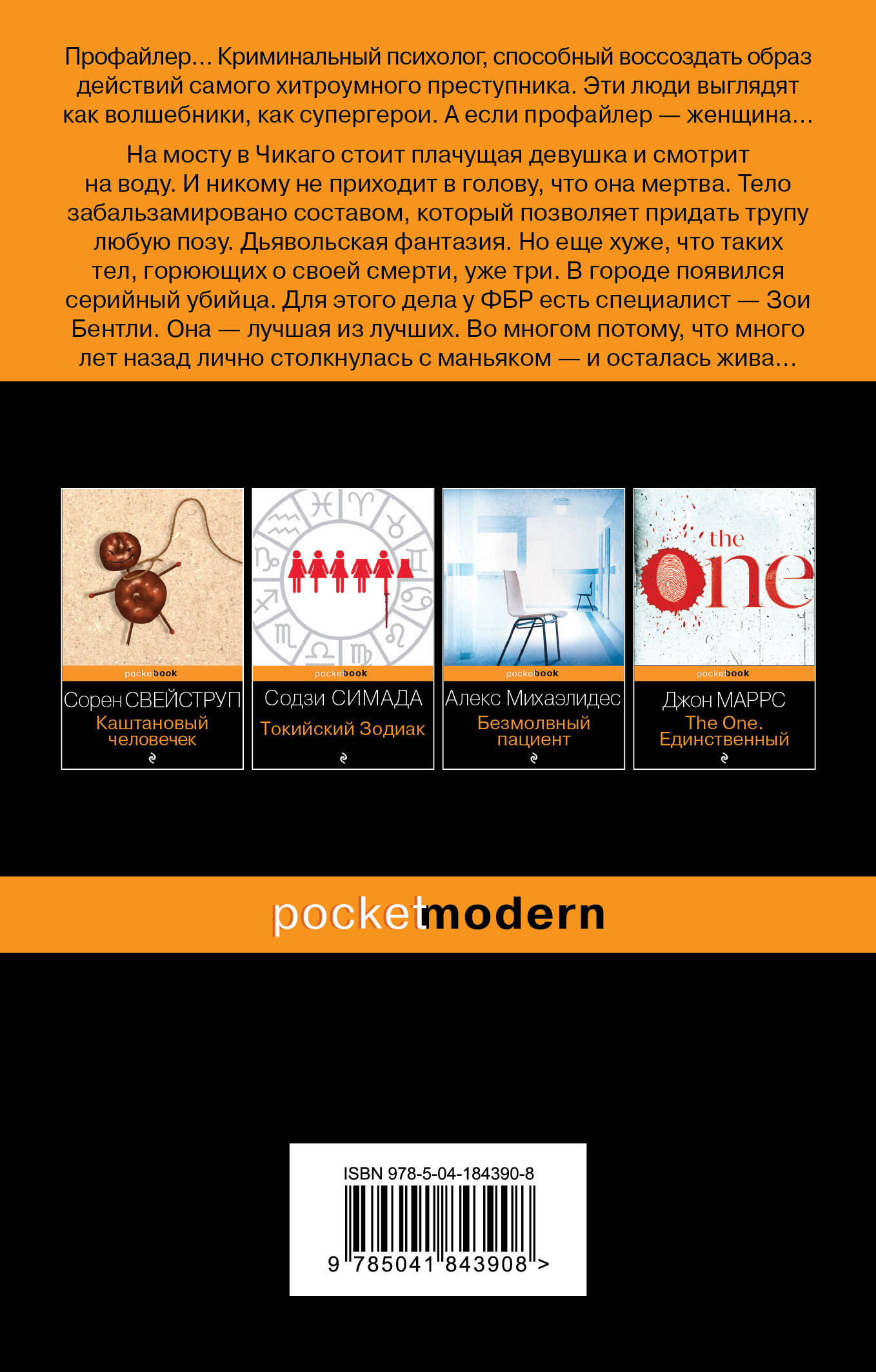 Чтобы поймать убийцу, нужно смотреть глазами убийцы. БЕСТСЕЛЛЕР NEW YORK TIMES, WASHINGTON POST И AMAZON CHARTS. Профайлер… Криминальный психолог, буквально по паре незначительных деталей способный воссоздать облик и образ действий самого хитроумного преступника. Эти люди выглядят со стороны как волшебники, как супергерои. Тем более если профайлер - женщина… Разум убийцы - это ее территория. Она вычисляет серийных убийц. Он вычисляет жертв. Рано или поздно они встретятся… На мосту в Чикаго, облокотившись на перила, стоит молодая красивая женщина. Очень бледная и очень грустная. Она неподвижно смотрит на темную воду, прикрывая ладонью плачущие глаза. И никому не приходит в голову, что… ОНА МЕРТВА. На мосту стоит тело задушенной женщины, забальзамированное особым составом, который позволяет придать трупу любую позу. Поистине дьявольская фантазия. Но еще хуже, что таких тел, горюющих о собственной смерти, найдено уже три. В городе появился… СЕРИЙНЫЙ УБИЙЦА. Расследование ведет полиция Чикаго, но ФБР не доверяет местному профайлеру, считая его некомпетентным. Для такого сложного дела у Бюро есть свой специалист - Зои Бентли. Она - лучшая из лучших. Во многом потому, что когда-то, много лет назад, лично столкнулась с серийным убийцей - И ОСТАЛАСЬ ЖИВА…| Издательство | ООО "Издательство "Эксмо" |