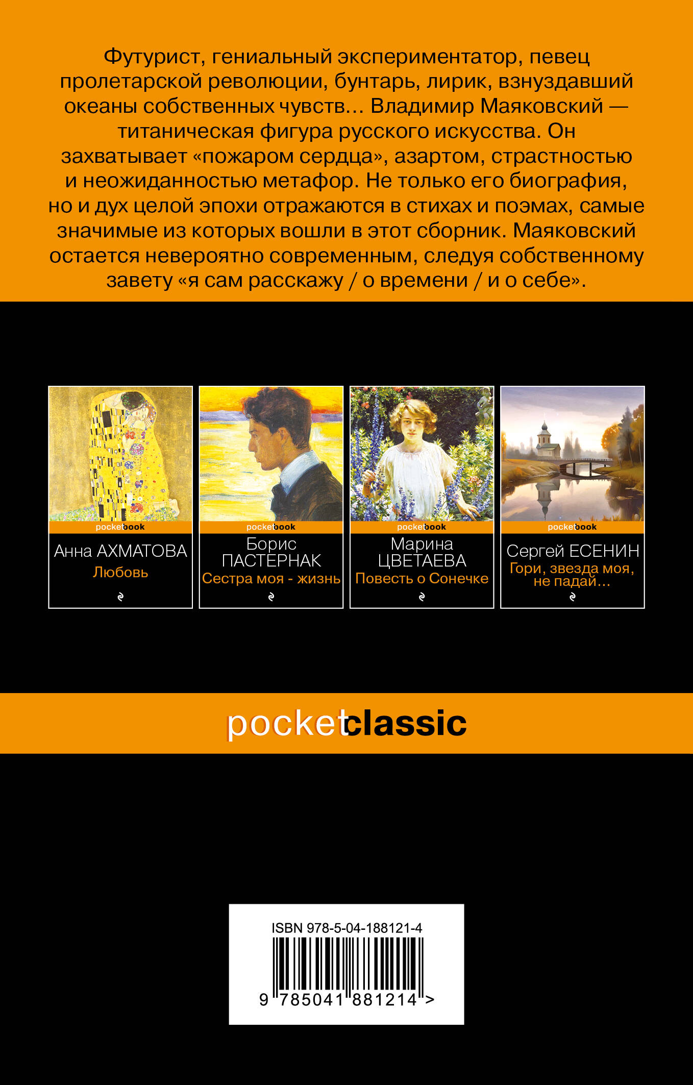 Многогранно талантливый, бунтарски страстный, лирически нежный, а главное, нестандартный Владимир Маяковский - одна из титанических фигур русского искусства. Он буквально захватывает внимание читателя «пожаром сердца», азартом, необычностью метафор. Вся его биография отражается в стихах, поэмах, а самые значимые представлены в этом сборнике. Изучая поэзию великого футуриста, читатель становится сопричастным открытиям поэта, чувствует его творческое движение, понимает, какие темы, вопросы, проблемы, препятствия возникали на его пути, и разбирается, как именно Маяковский пытался с ними справиться, переживая трагедию творческой личности, оказавшейся в начале ХХ века в России.| Издательство | ООО "Издательство "Эксмо" |