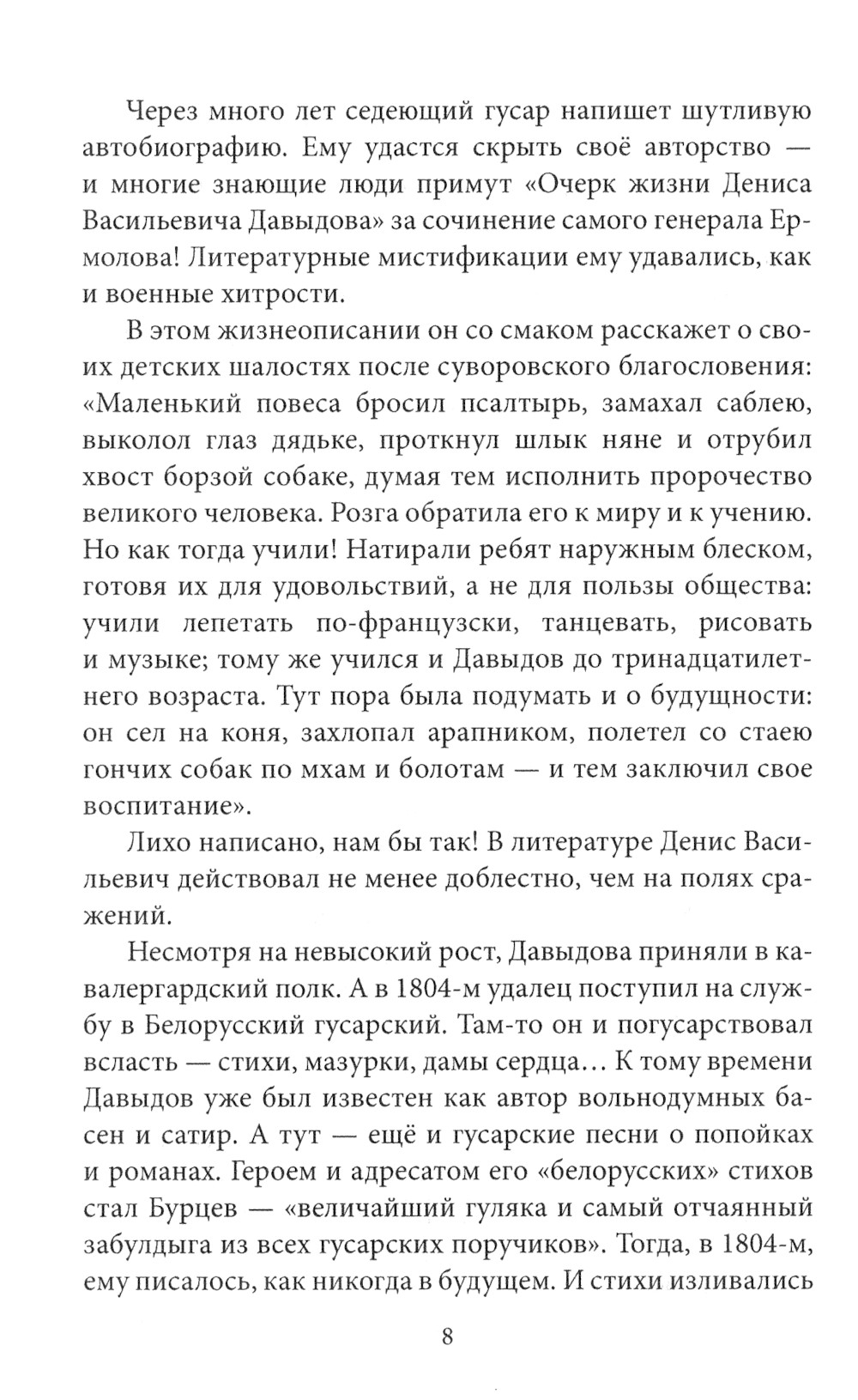 Денис Васильевич Давыдов был одним из самых известных людей своего времени. Едва ли не в каждой избе висел его портрет. Храбрый офицер, с юности знакомый с самим Суворовым, он окончил службу в чине генерал-лейтенанта, пройдя через дюжину войн. Великую славу принесла Давыдову Отечественная война 1812 года, в которой он проявил талант организатора партизанского движения и незаурядного полководца. В своей книге Денис Давыдов рассказывает о том, почему русская армия побеждала, воскрешает для нас образы полководцев, офицеров и солдат. Книга предназначена для всех, кто неравнодушен к русской истории.