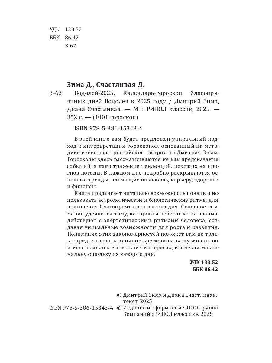 Аннотация: Водолей-2025. Календарь-гороскоп благоприятных дней Водолея в 2025 году