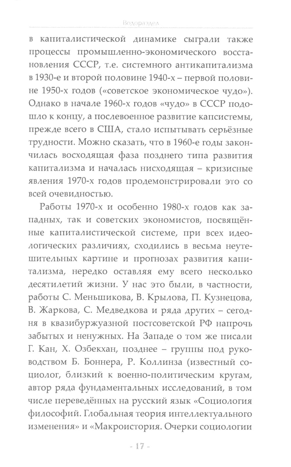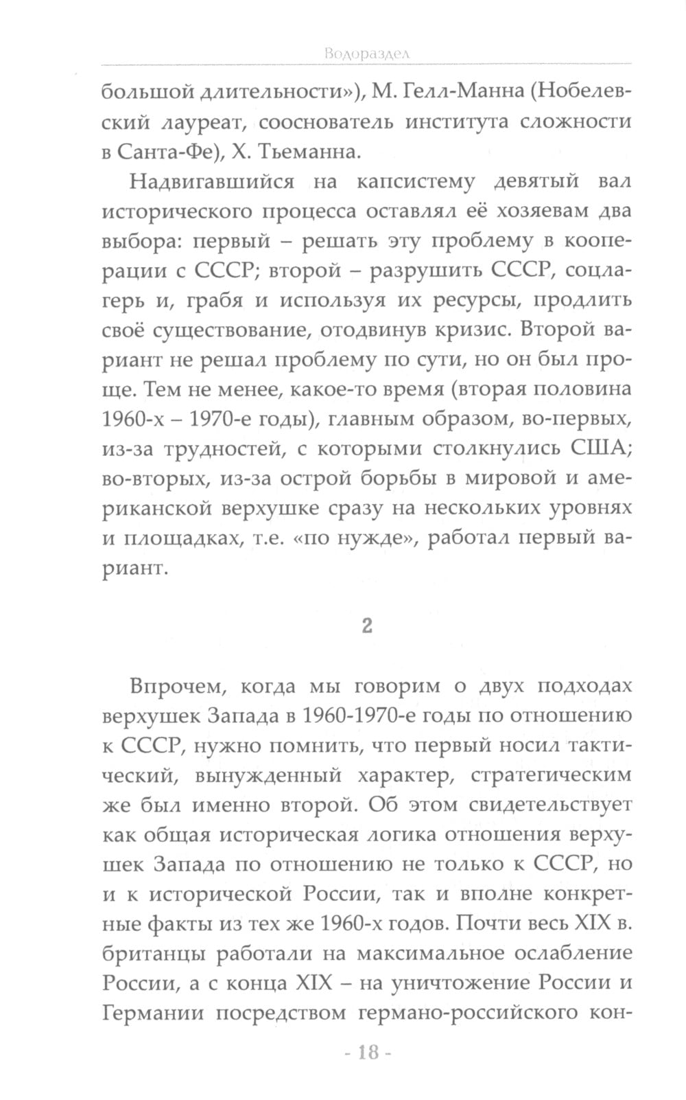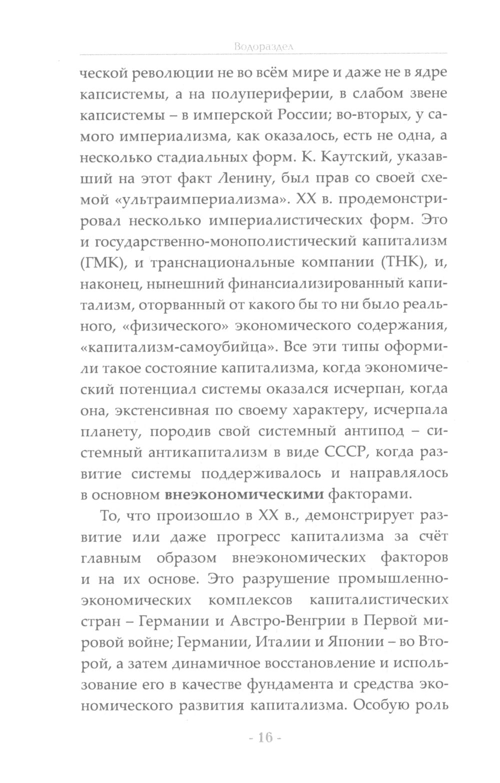 Мировые катаклизмы 2020-2024 годов говорят нам о возможных тектонических изменениях в мире. Что случится быстрее в ближайшие десятилетия: демонтаж капитализма «сверху» или его крах? Удастся ли при этом избежать глобальной катастрофы? Сможем ли мы использовать марксизм как оружие в психоисторической войне против наших западных «партнеров»? Как России пройти горнило глобального апокалипсиса и занять достойное место в будущем посткапиталистическом мире? Цель второго издания культовой книги Андрея Фурсова «Водораздел» - попытаться представить развитие мира в целом, его основных макрорегионов и крупнейших стран в эпоху мирового кризиса капитализма и перехода человечества к новому социально-экономическому устройству.| Издательство | Книжный мир |