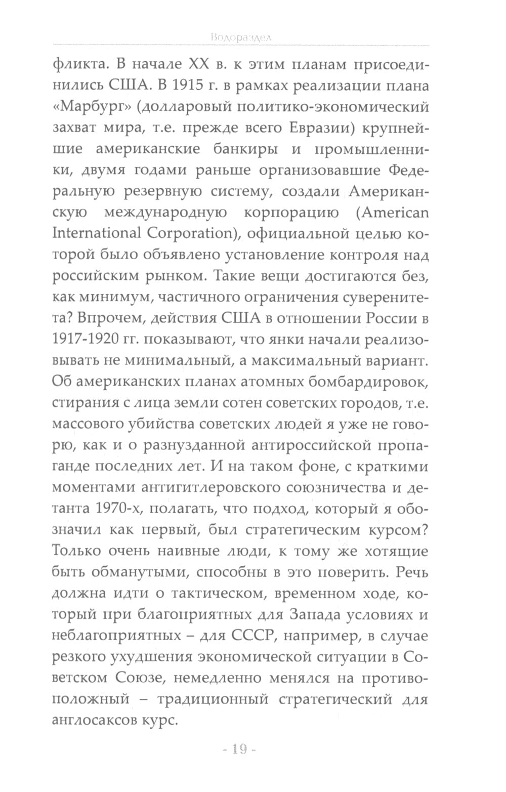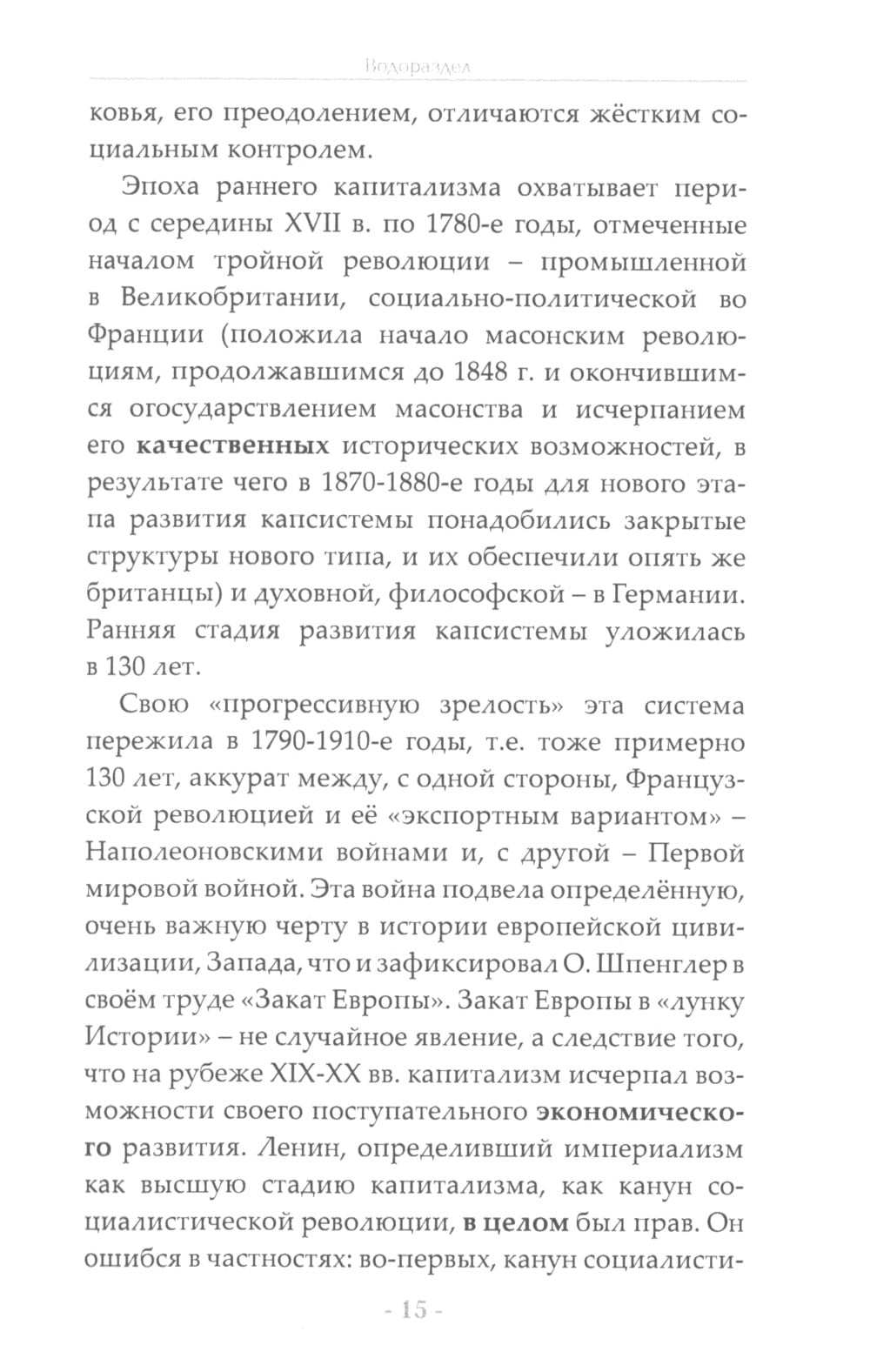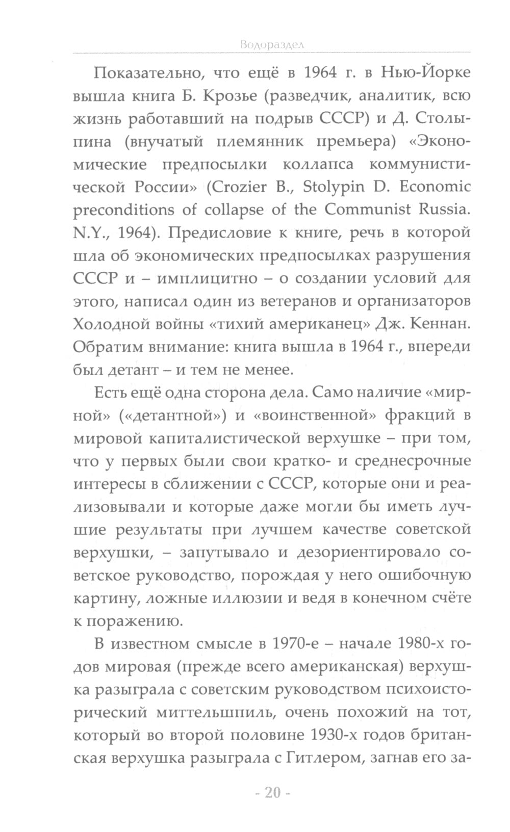 Мировые катаклизмы 2020-2024 годов говорят нам о возможных тектонических изменениях в мире. Что случится быстрее в ближайшие десятилетия: демонтаж капитализма «сверху» или его крах? Удастся ли при этом избежать глобальной катастрофы? Сможем ли мы использовать марксизм как оружие в психоисторической войне против наших западных «партнеров»? Как России пройти горнило глобального апокалипсиса и занять достойное место в будущем посткапиталистическом мире? Цель второго издания культовой книги Андрея Фурсова «Водораздел» - попытаться представить развитие мира в целом, его основных макрорегионов и крупнейших стран в эпоху мирового кризиса капитализма и перехода человечества к новому социально-экономическому устройству.| Издательство | Книжный мир |