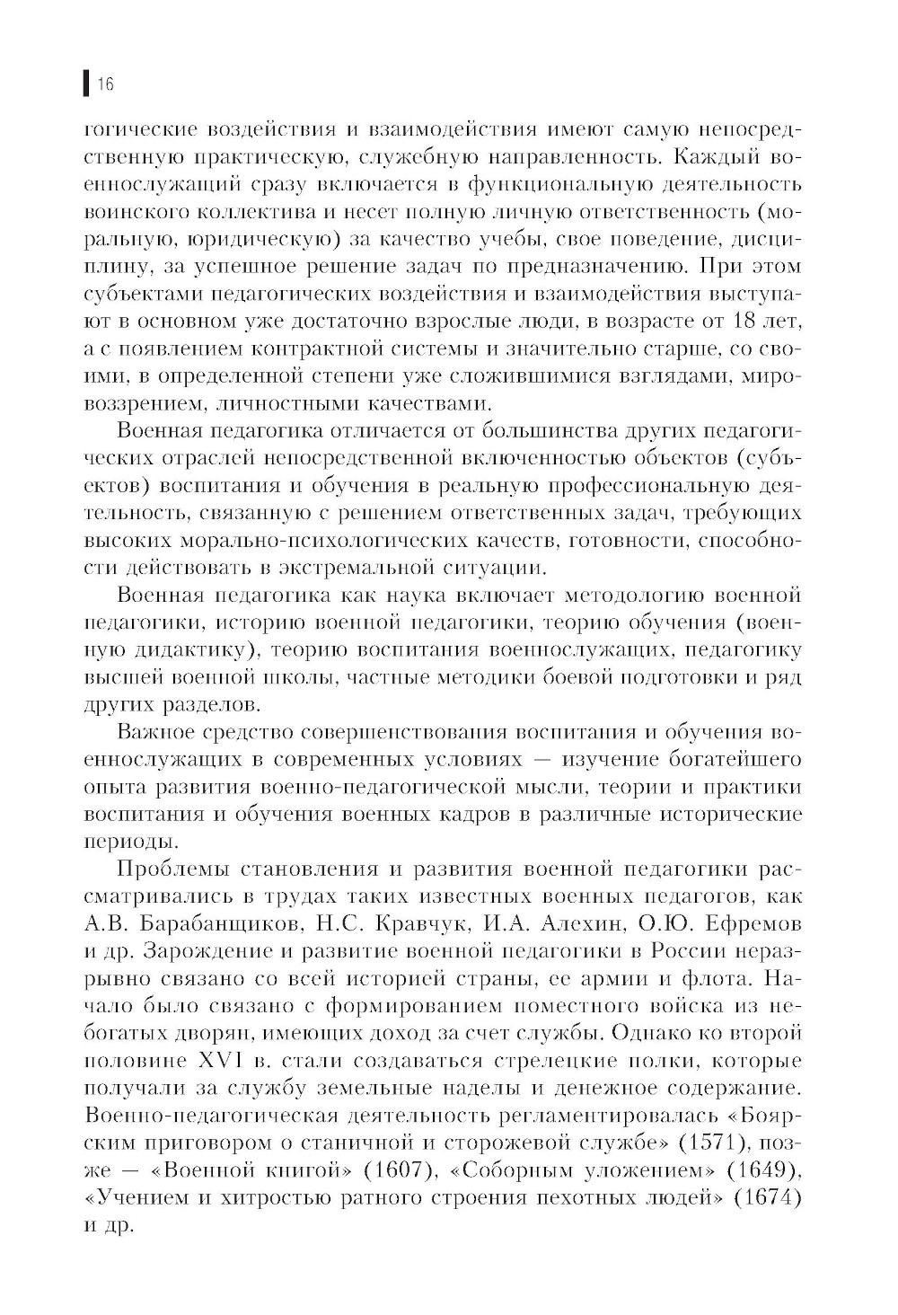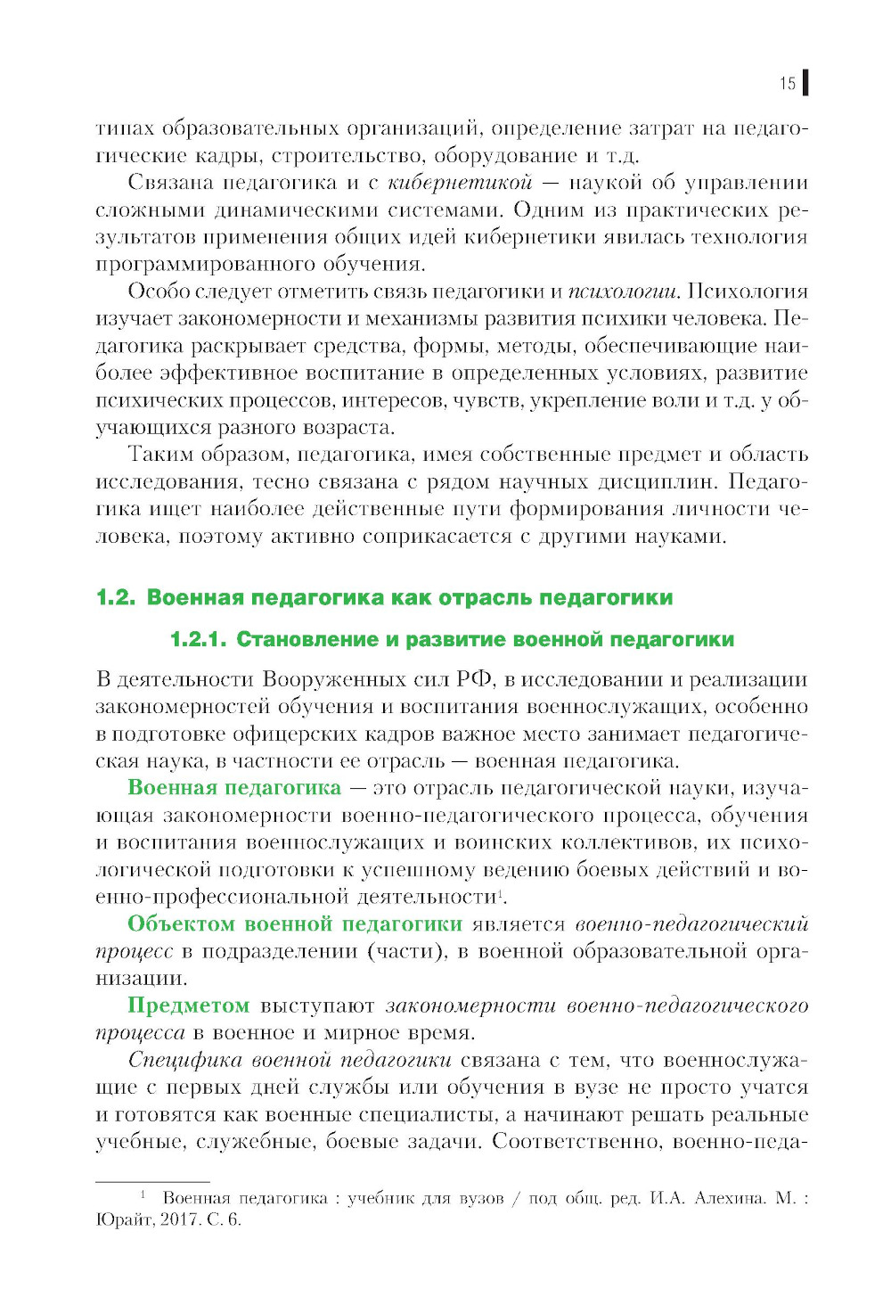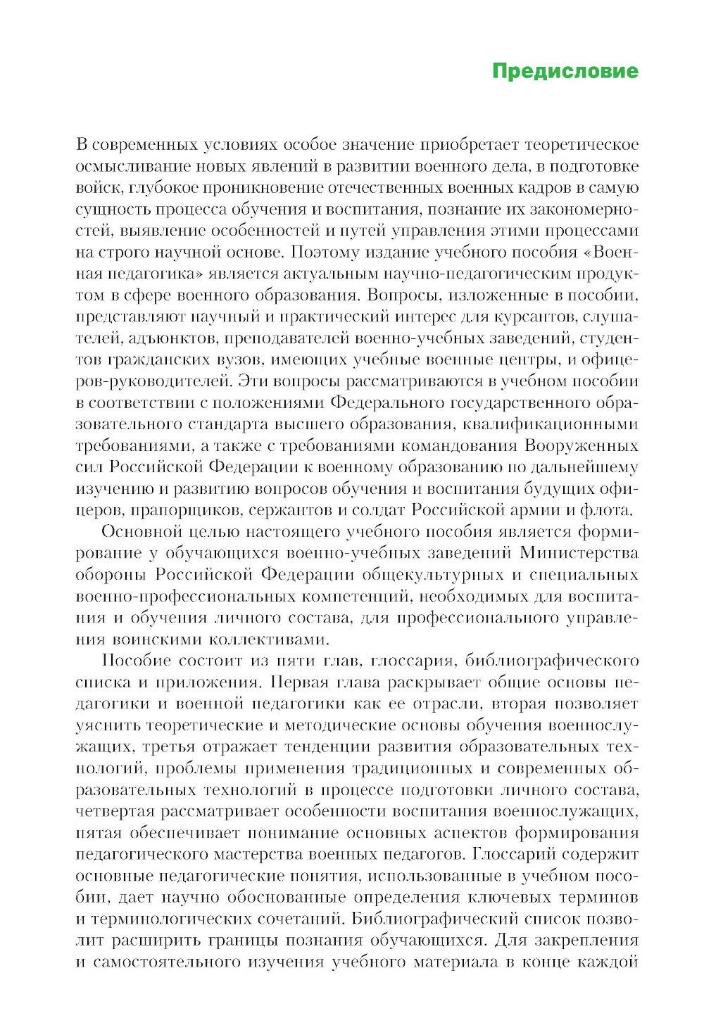 Детально рассматриваются цели, задачи, закономерности, принципы, формы, методы, средства обучения и воспитания военнослужащих. Особое внимание уделяется современным образовательным технологиям, применяющимся в обучении военнослужащих различных категорий, и формированию педагогического мастерства военных педагогов. Раскрываются специфика организации военно-педагогического процесса в образовательных организациях Вооруженных Сил РФ, а также практические аспекты деятельности офицеров по обучению и воспитанию подчиненного личного состава. Соответствует ФГОС ВО последнего поколения. Для курсантов, слушателей, адъюнктов, студентов учебных военных центров, преподавателей военных образовательных организаций и командиров воинских частей и подразделений ВС РФ.| Издательство | КноРус |