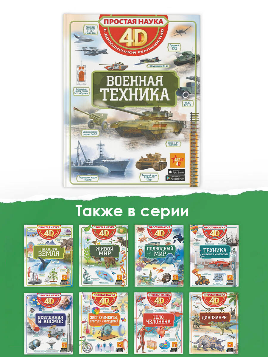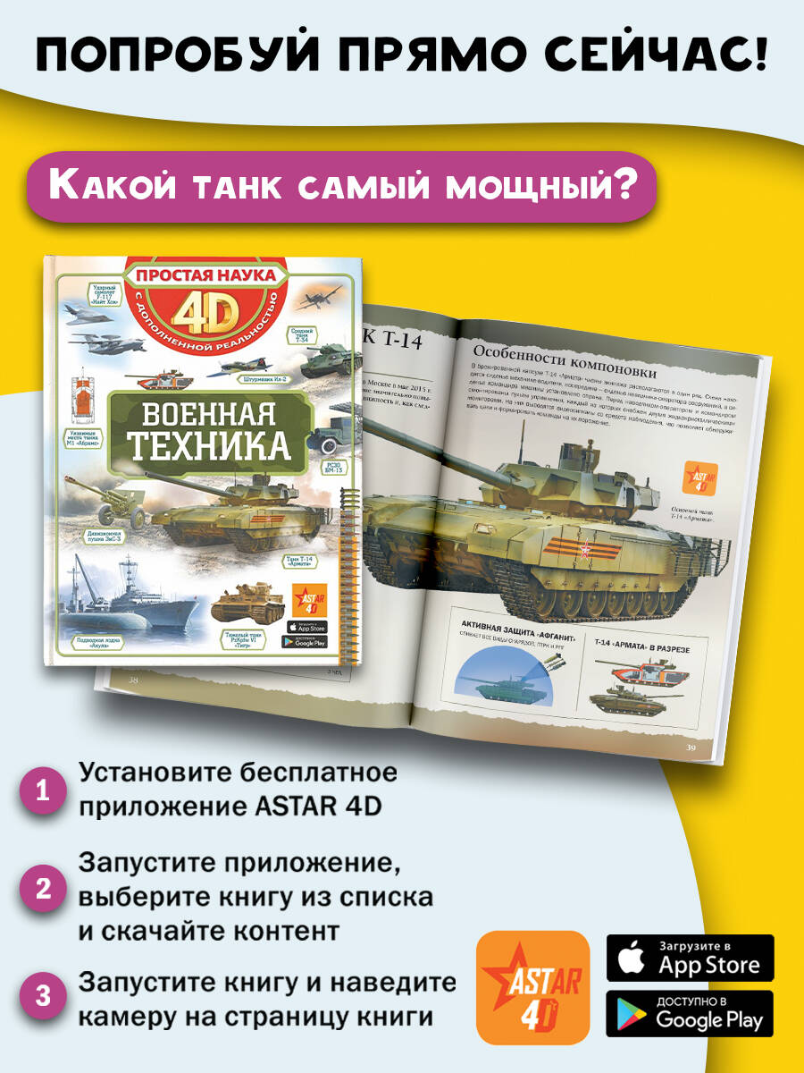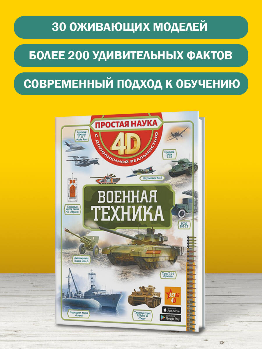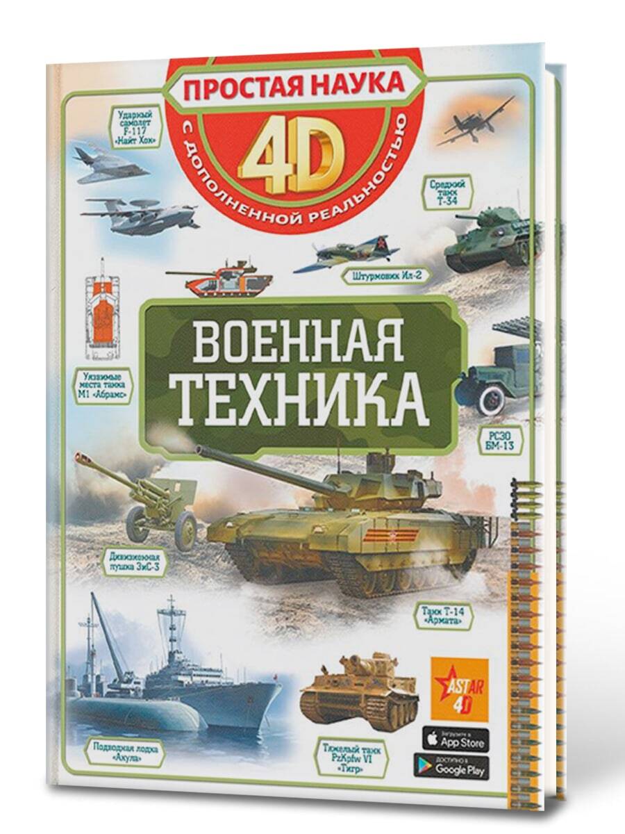 Эта книга рассказывает о различной военной технике, созданной людьми за последнее столетие. За устройством и работой самых разных изобретений военных теперь можно наблюдать прямо на этих страницах. Ведь это не обычная книга, а 4D-издание! Читай, изучай иллюстрации, рассматривай объемные движущиеся модели, слушай познавательные аудиозаписи. Элементы дополненной реальности обязательно помогут новым знаниям запомниться надолго. Изучать военную технику в 4D не только легко, но и невероятно интересно! Для среднего и старшего школьного возраста.| Издательство | ИЗДАТЕЛЬСТВО "АСТ" |