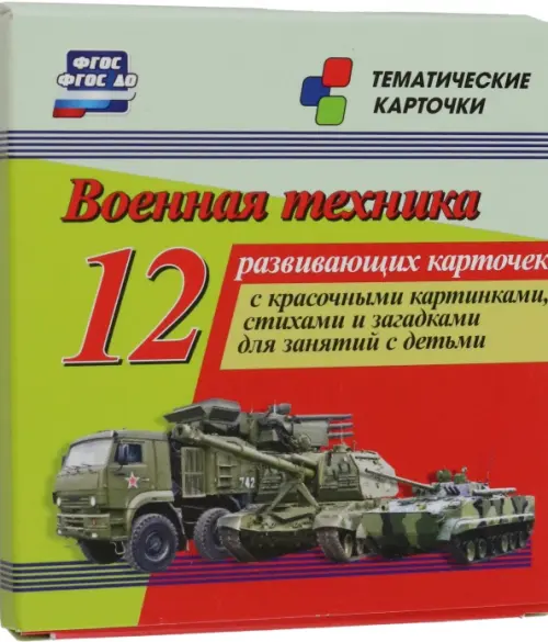 Военная техника. 12 развивающих карточек с красочными картинками, стихами и загадками для занятий