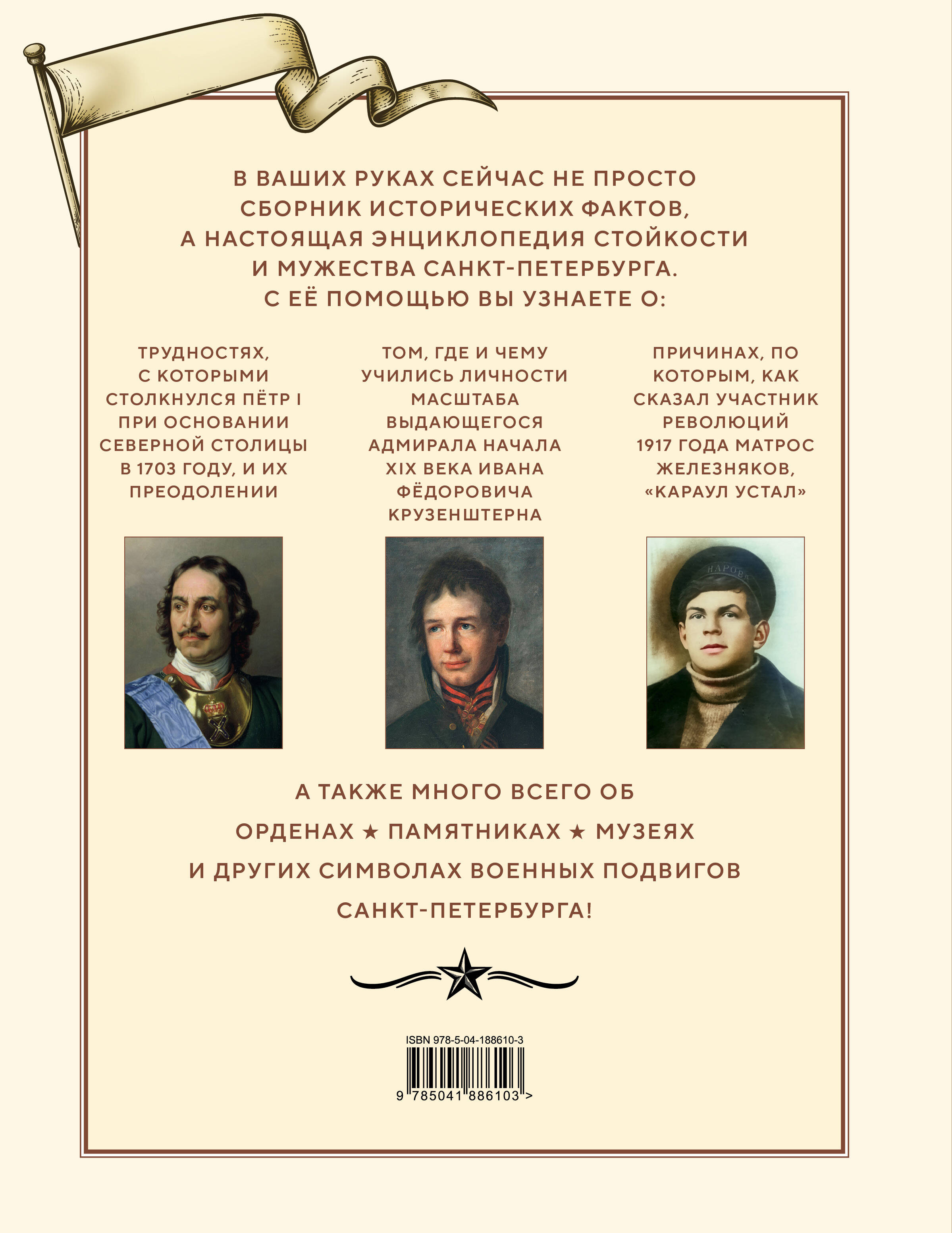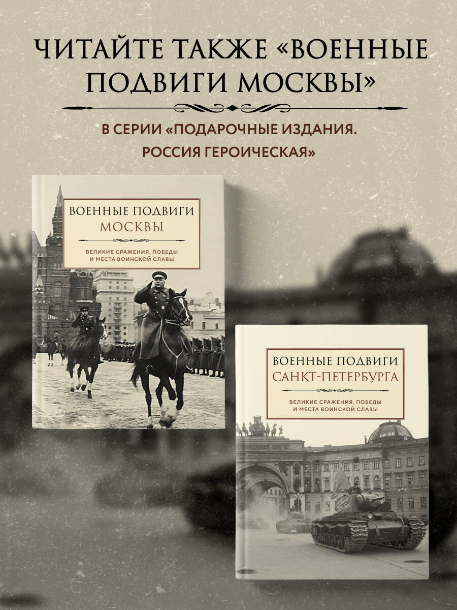 Книга «Военные подвиги Санкт-Петербурга» - это кладезь всего самого важного и интересного о военной истории нашей Северной столицы. В ней вы найдете захватывающие истории о том, как город был построен в тяжелейших условиях военного времени и с тех пор стал сценой для судьбоносных событий в истории нашей родины, о славных триумфах и невыносимых тяготах военных лет, о героях и их подвигах. С помощью обилия красочных иллюстраций и исторических фактов эта книга подробно рассказывает как о событиях Северной войны, так и о крепостях, построенных в ходе тех событий. Она поднимает вопросы о причинах, породивших эпоху дворцовых переворотов, и ее последствиях. Освещает события обеих революций 1917 года и повествует о дальнейшей судьбе города. И, конечно же, широко и подробно раскрывает тему блокады Ленинграда. Познакомьтесь с местами, памятниками и орденами, хранящими в себе воспоминания о людях, достойных того, чтобы мы о них помнили. Узнайте о героизме Санкт-Петербурга через личные истории подвигов огромного множества людей, память о которых бессмертна.| Издательство | ООО "Издательство "Эксмо" |