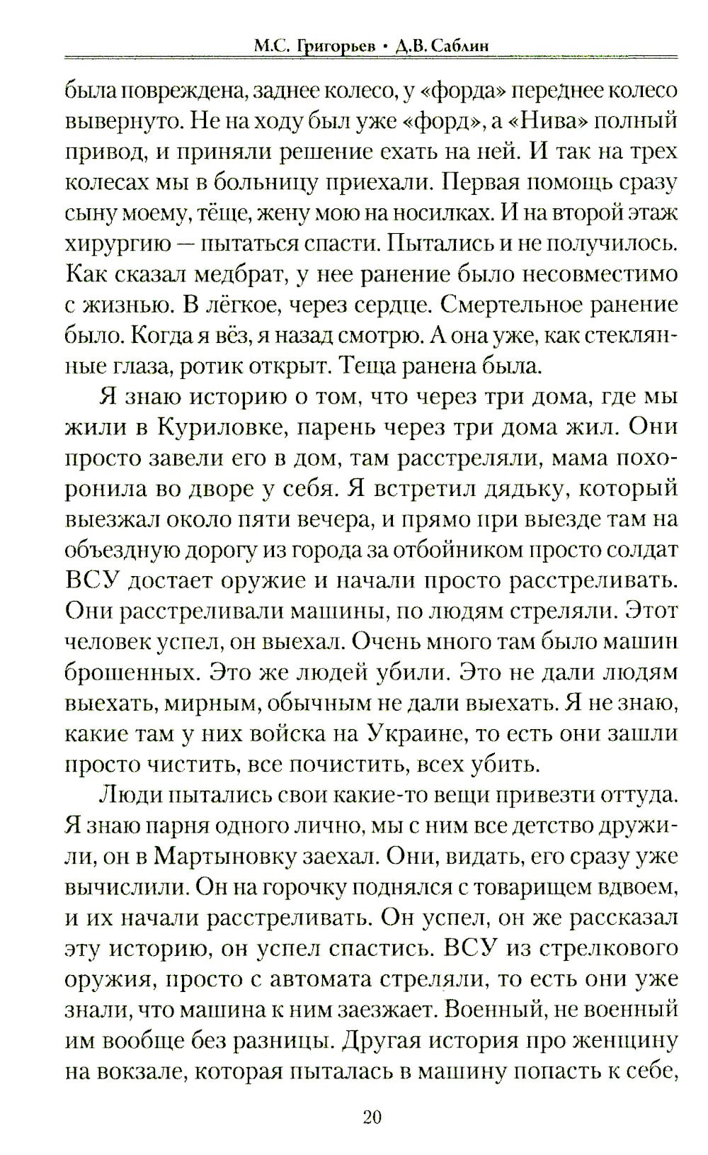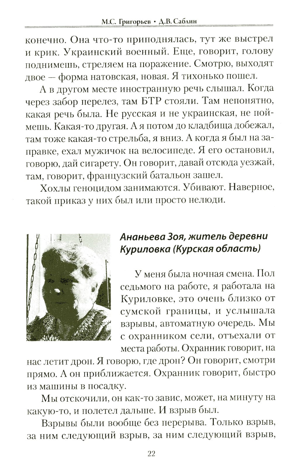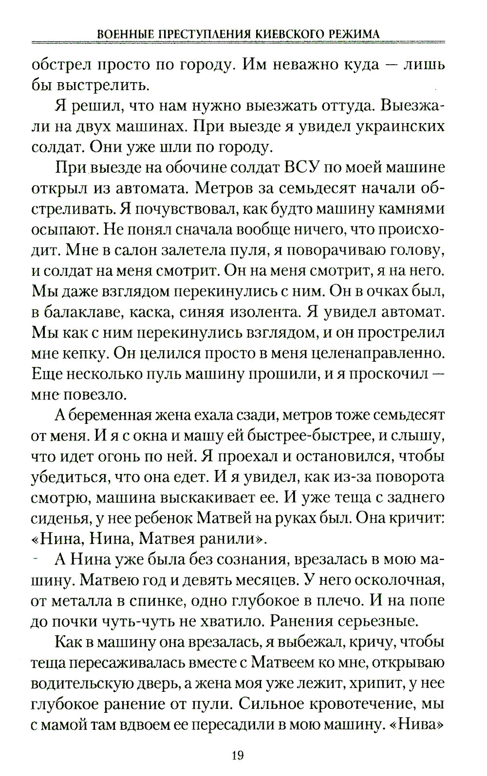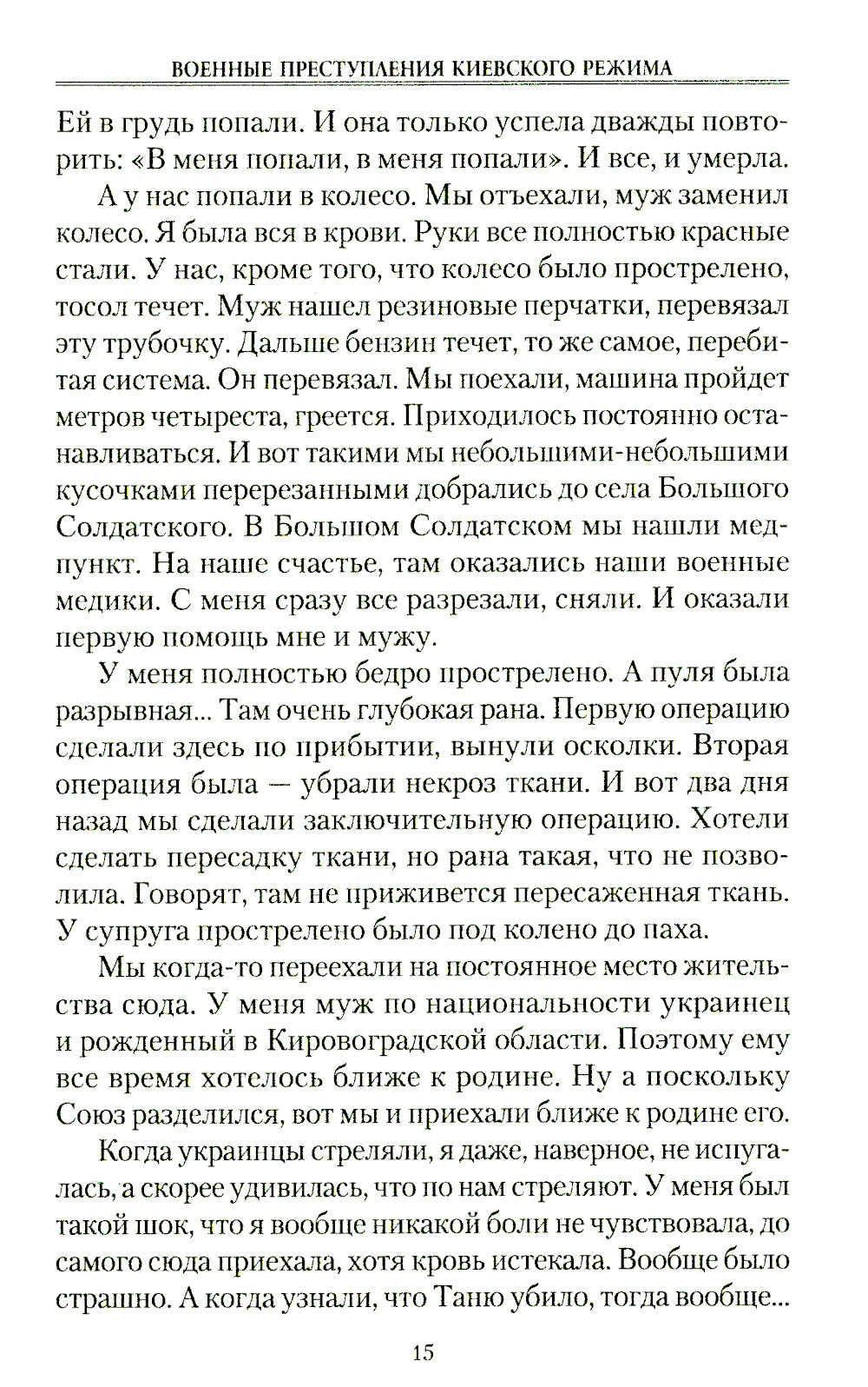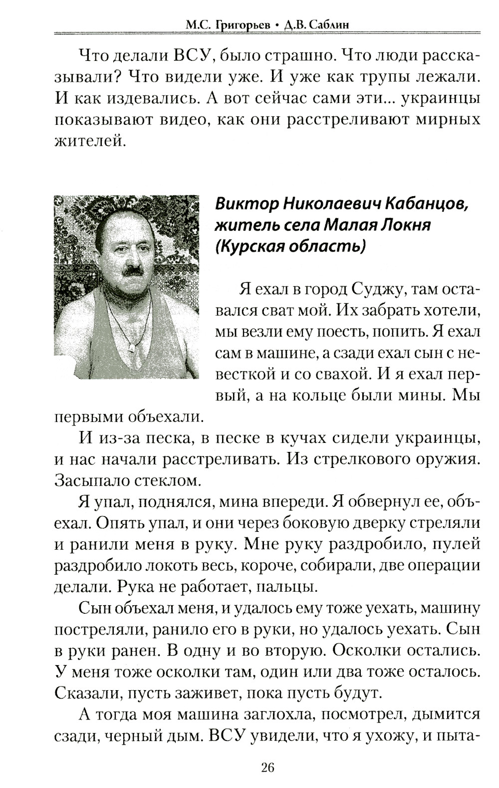 В этом издании представлены собранные Международным общественным трибуналом по преступлениям украинских неонацистов непосредственные свидетельства пострадавших от Вооруженных сил Украины. В Курской области ВСУ расстреливали мирное население, включая женщин, детей и стариков, как в их собственных домах, так и при попытках эвакуации в гражданских автомашинах с полным пониманием невоенного статуса жертв, наносили удары по больницам и церквям. На временно подконтрольной Украине территории русскоязычное население с 2014 года подвергалось постоянному террору. Показания свидетелей обличают украинскую власть в убийствах, пытках, избиениях, изнасилованиях, исчезновении людей и прицельных обстрелах их домов. ВСУ открыто говорили о своей ненависти к русскоязычному населению Донбасса, а угрозы убийств и расстрелов мирного населения были постоянной практикой киевского режима. Представленные в издании факты являются доказательствами военных преступлений, которые не имеют срока давности.| Издательство | Вече |