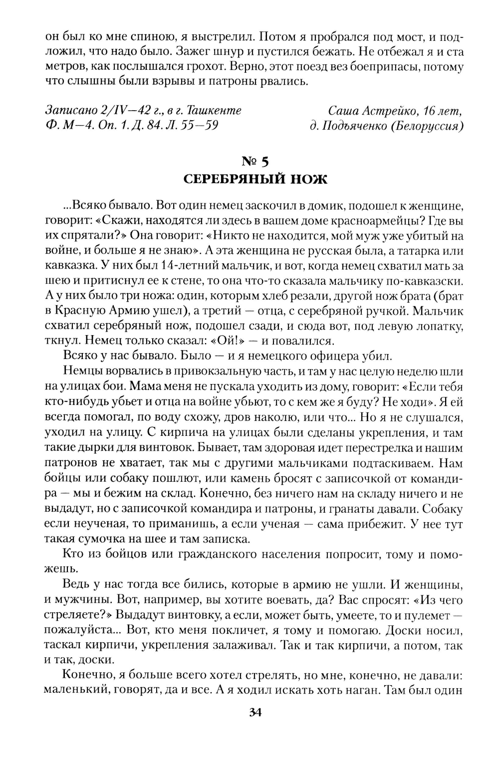 «Дети - это завтрашние судьи наши, это критики наших воззрений, деяний, это люди, которые идут в мир на великую работу строительства новых форм жизни ... их отношение друг к другу, к человеку, миру складываются во время войны, когда одни дети играют с трупами, другие вместе с взрослыми принимают непосредственное участие в войне... и мне кажется, что нам, взрослым, следует знать, как мыслят дети о войне». Это высказывание А.М. Горького может стать эпиграфом к настоящему сборнику, в котором собраны свидетельства детей, переживших тяжелейшие испытания Великой Отечественной войны, прошедших через немецкую оккупацию и концлагеря, воевавших в партизанских отрядах и в действующих войсках, работавших в колхозах, на заводах и фабриках. Книга выходит к 70-летию начала Великой Отечественной войны.| Издательство | Вече |