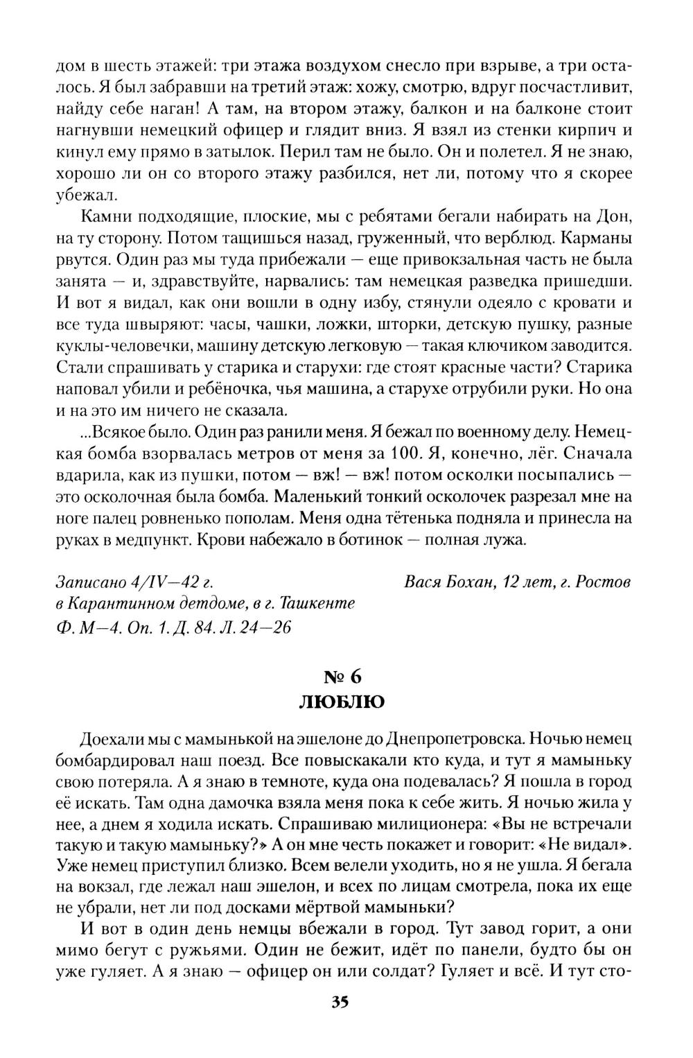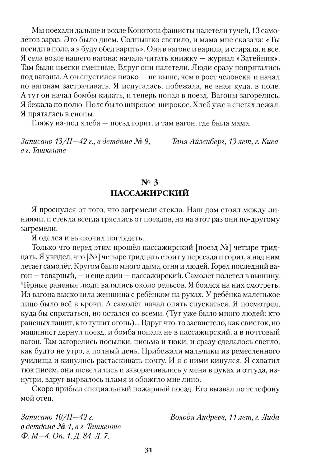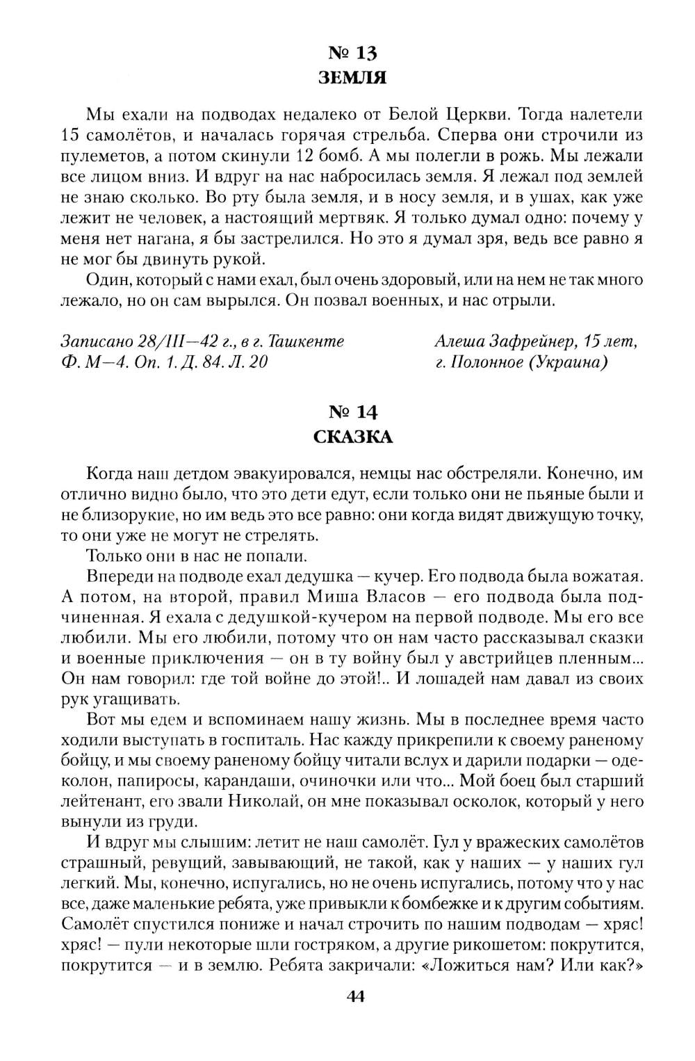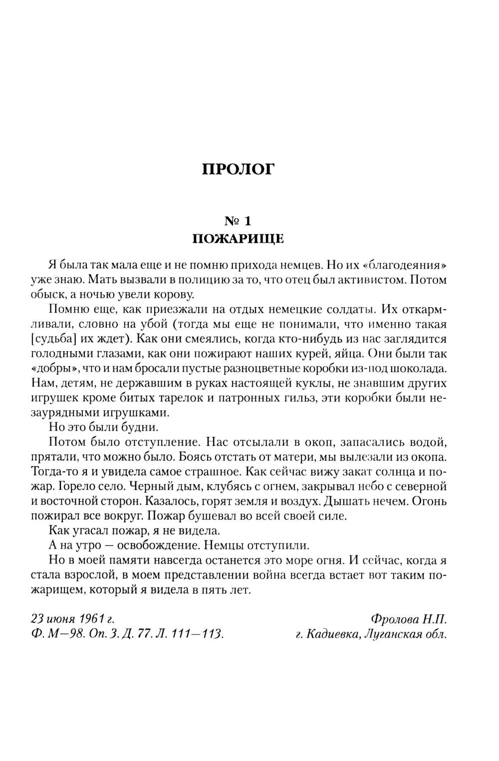 «Дети - это завтрашние судьи наши, это критики наших воззрений, деяний, это люди, которые идут в мир на великую работу строительства новых форм жизни ... их отношение друг к другу, к человеку, миру складываются во время войны, когда одни дети играют с трупами, другие вместе с взрослыми принимают непосредственное участие в войне... и мне кажется, что нам, взрослым, следует знать, как мыслят дети о войне». Это высказывание А.М. Горького может стать эпиграфом к настоящему сборнику, в котором собраны свидетельства детей, переживших тяжелейшие испытания Великой Отечественной войны, прошедших через немецкую оккупацию и концлагеря, воевавших в партизанских отрядах и в действующих войсках, работавших в колхозах, на заводах и фабриках.| Издательство | Вече |