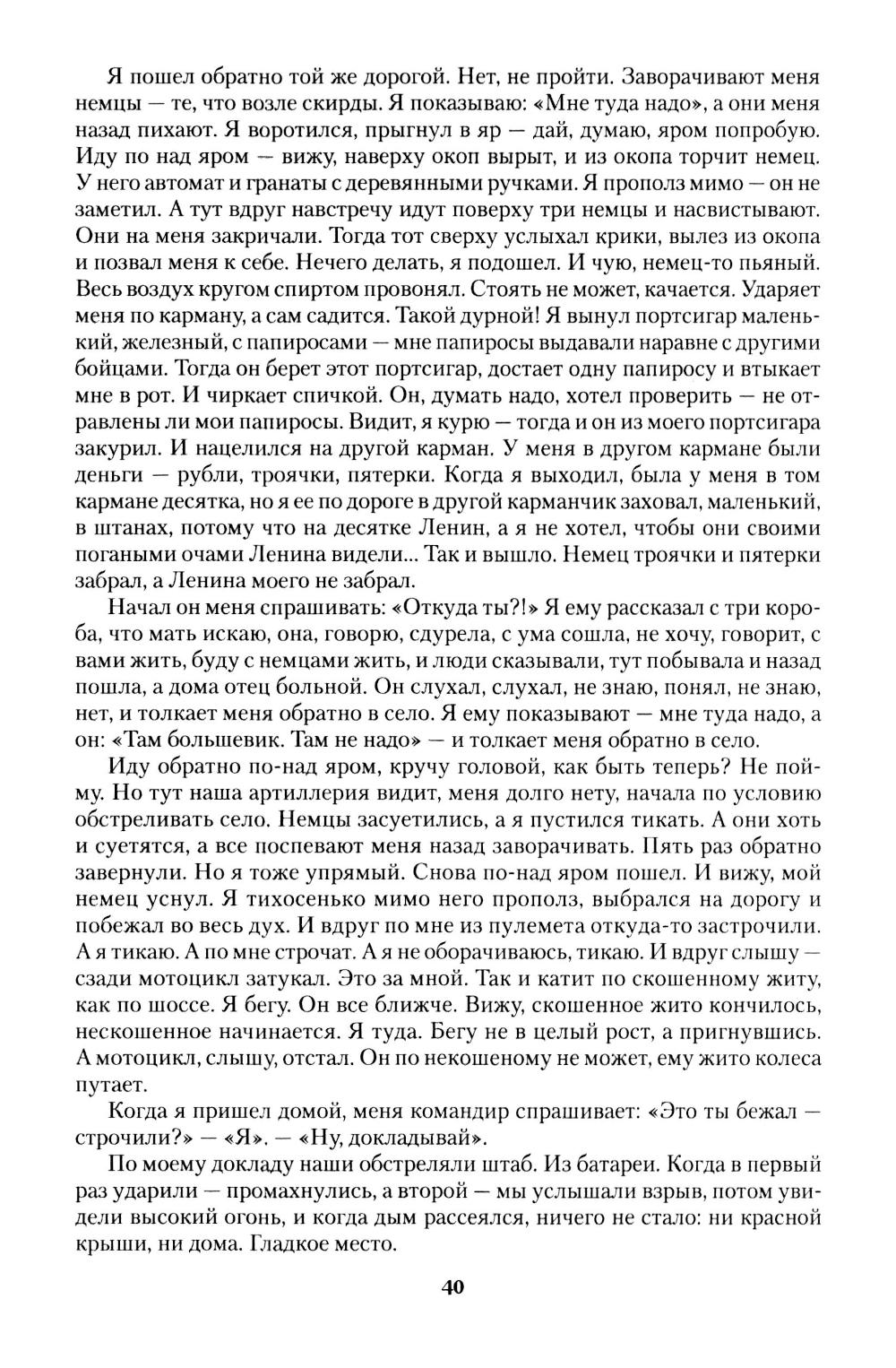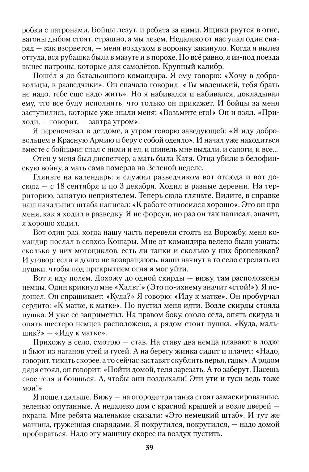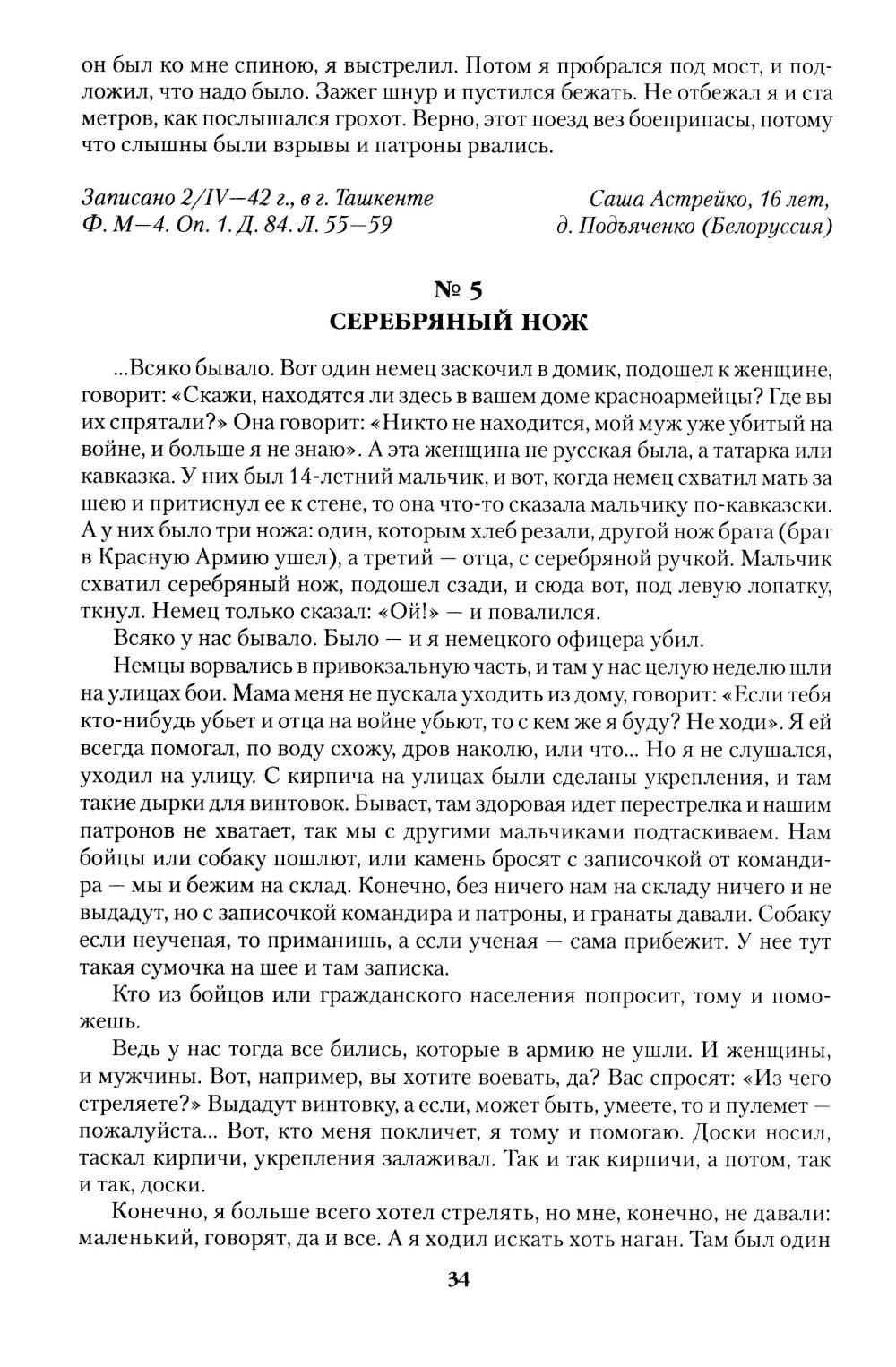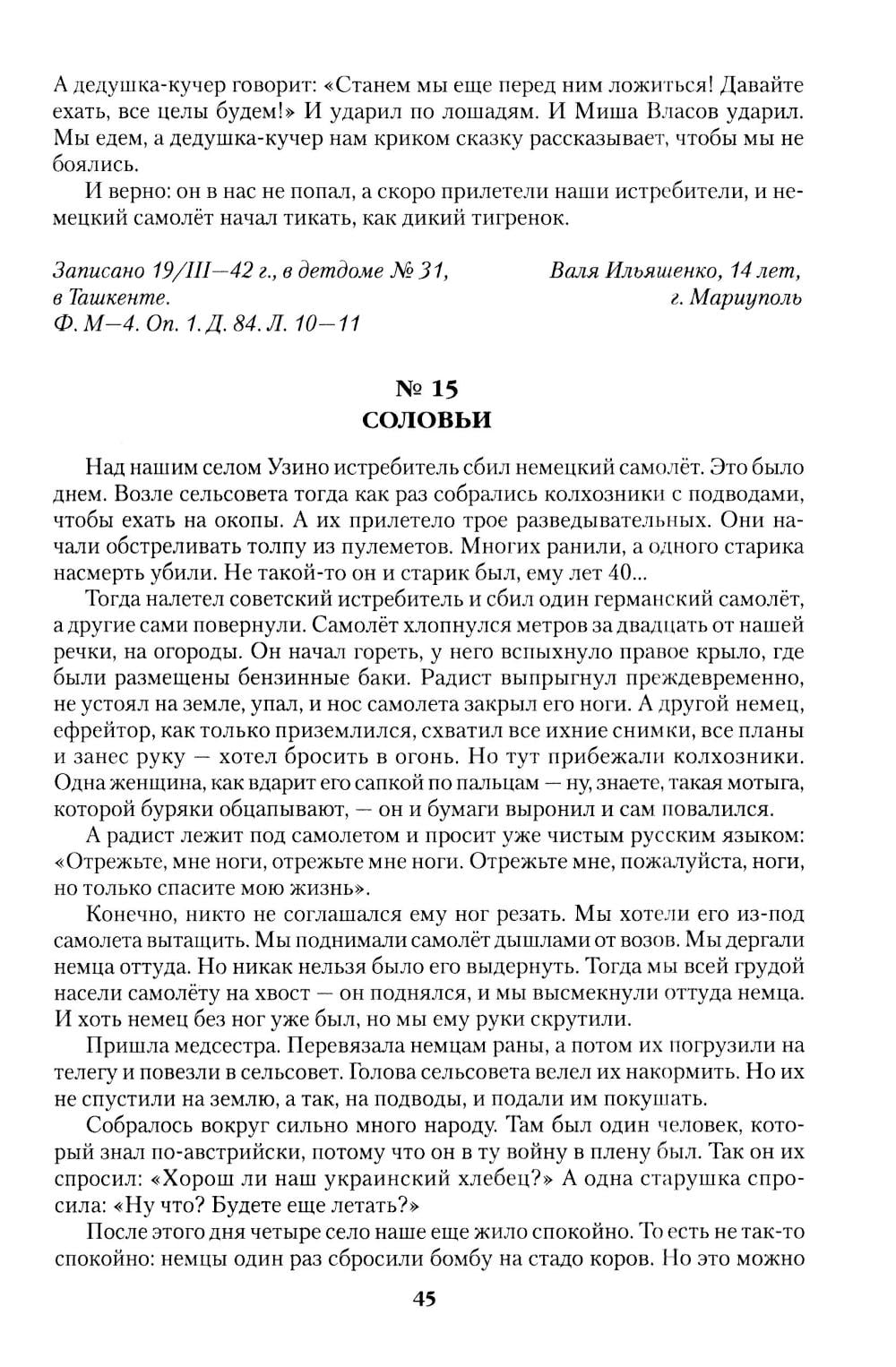 «Дети - это завтрашние судьи наши, это критики наших воззрений, деяний, это люди, которые идут в мир на великую работу строительства новых форм жизни ... их отношение друг к другу, к человеку, миру складываются во время войны, когда одни дети играют с трупами, другие вместе с взрослыми принимают непосредственное участие в войне... и мне кажется, что нам, взрослым, следует знать, как мыслят дети о войне». Это высказывание А.М. Горького может стать эпиграфом к настоящему сборнику, в котором собраны свидетельства детей, переживших тяжелейшие испытания Великой Отечественной войны, прошедших через немецкую оккупацию и концлагеря, воевавших в партизанских отрядах и в действующих войсках, работавших в колхозах, на заводах и фабриках.| Издательство | Вече |