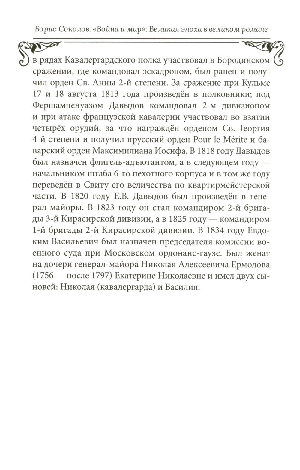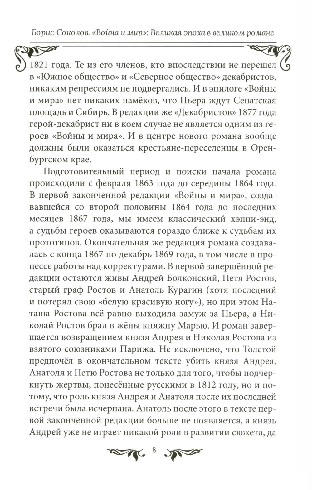 В новой книге известного историка и писателя, доктора филологических наук Бориса Соколова показано, как великая эпоха русской жизни - эпоха Отечественной войны 1812 года - отразилась в великом романе Льва Толстого. Рассказывается об исторических прототипах героев и персонажах романа, о том, как причудливо преломляются судьбы прототипов в судьбах героев, об отразившихся в «Войне и мире» сражениях, о Наполеоновской Великой армии и о русской армии в 1812 году, а также о русском светском обществе начала XIX века. Для широкого круга читателей.| Издательство | Вече |