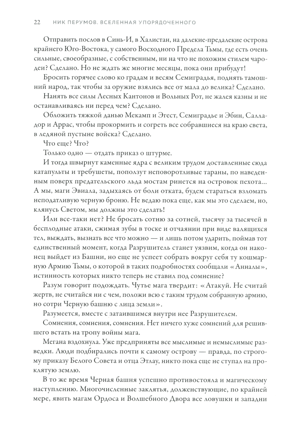 Страшная война между Светлыми и Темными силами началась под неприступными стенами Черной башни, к которым стянута многотысячная армия отца-экзекутора Этлау. Магические бои разворачиваются со всей мощью - против Тьмы выступают чародеи и некромант. Здесь и сейчас решается судьба Упорядоченного. А на всех других землях бушуют обычные войны - на копьях и мечах, - и не видно им конца. Борьба добра и зла не прекращается ни на минуту, и не всегда понятно, где на самом деле добро, а где зло. Однако Фессу удается вырваться из окружения и расстроить планы Западной Тьмы...| Издательство | Феникс |