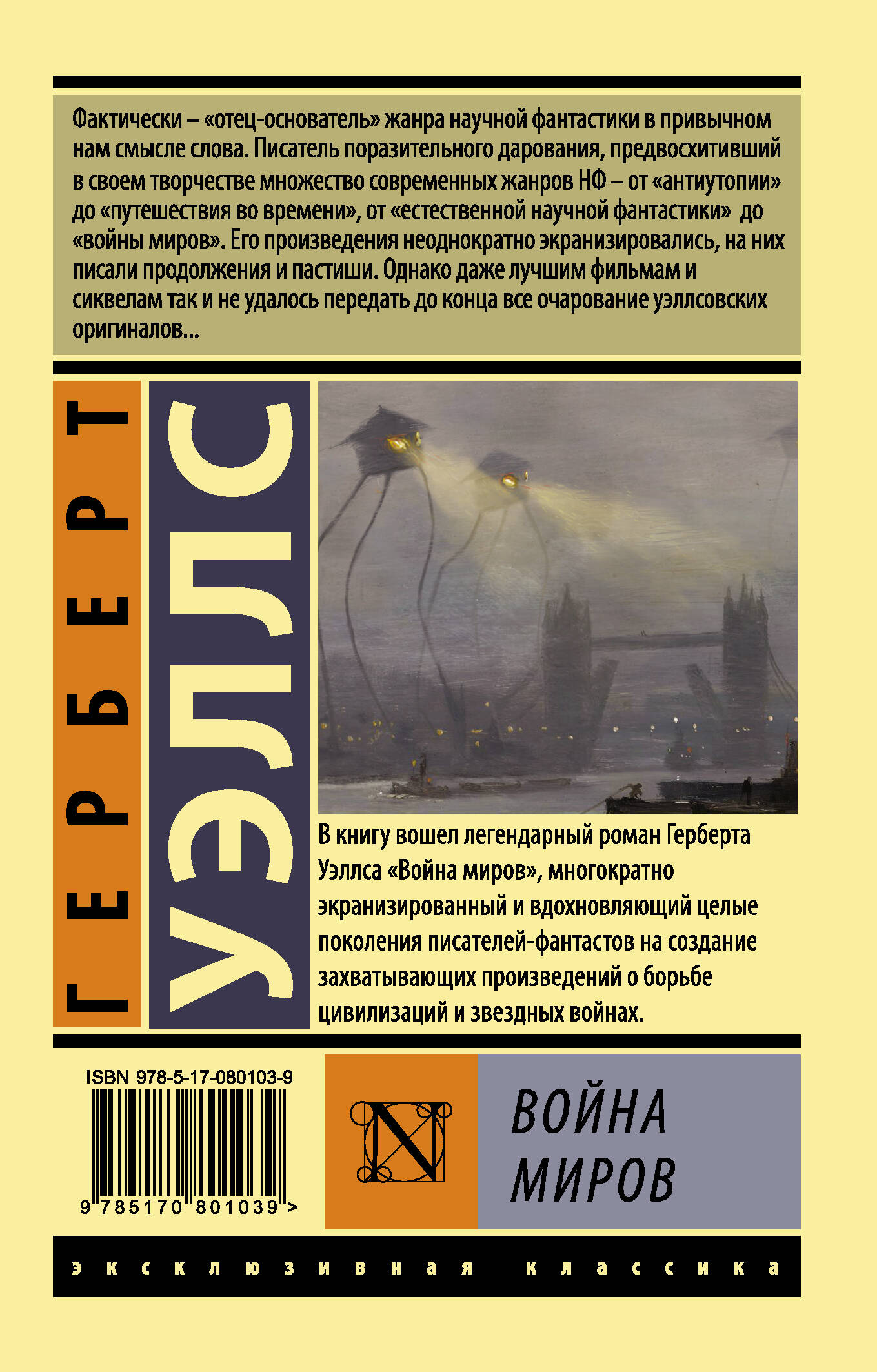 В книгу вошел легендарный роман Герберта Уэллса "Война миров", многократно экранизированный и вдохновляющий целые поколения писателей-фантастов на создание захватывающих произведений о борьбе цивилизаций и звездных войнах.| Издательство | ИЗДАТЕЛЬСТВО "АСТ" |
