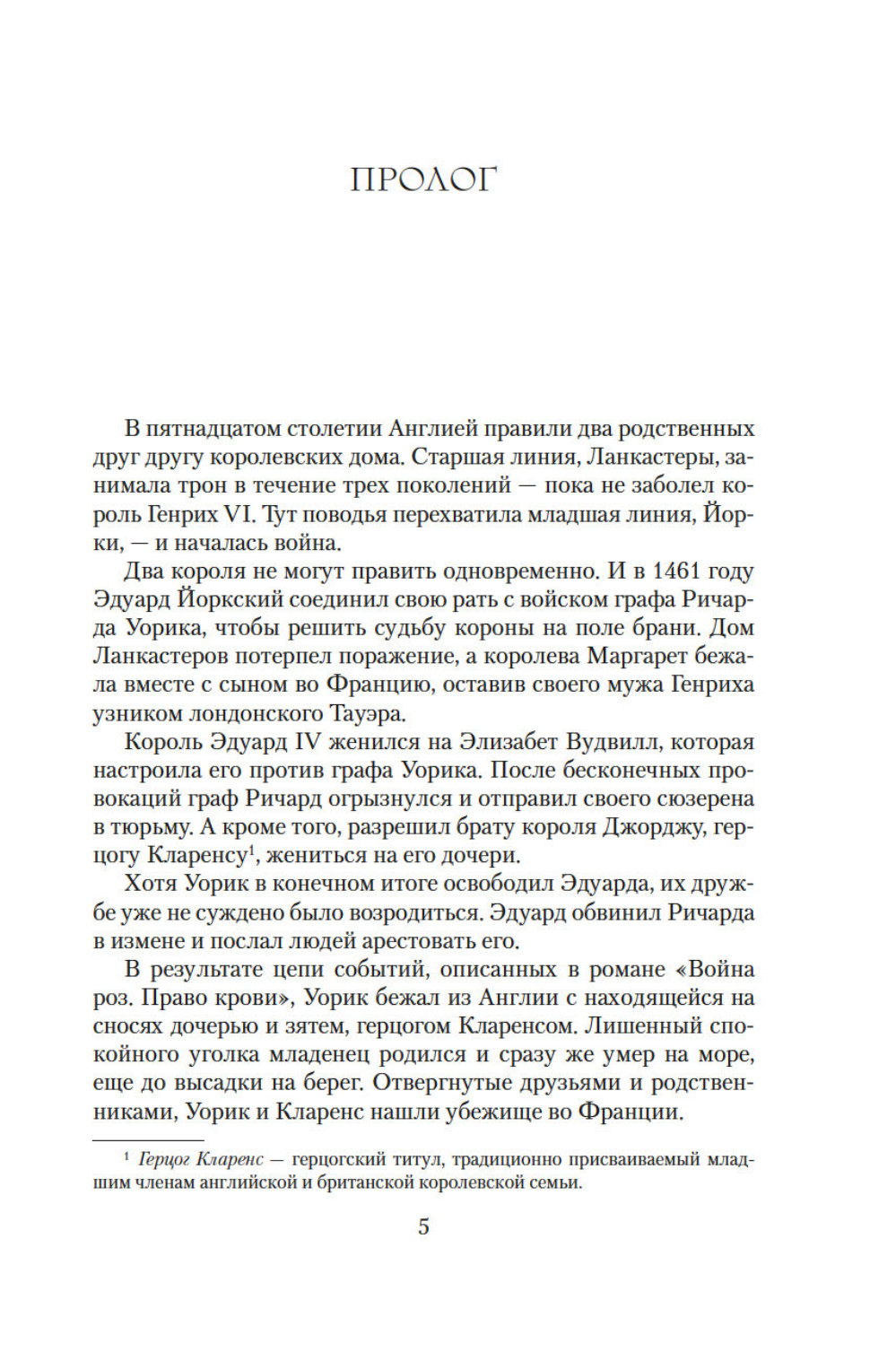 Год 1470-й. Король Эдуард Йоркский изгнан из Англии. Королева Элизабет и ее дети дрожат от страха за свою жизнь в Вестминстерском аббатстве. Ланкастеры завоевали корону, но Йорки не отказались от борьбы. Эдуард предпринимает отчаянную попытку вернуть трон - заключает союз с правителем Бургундии Карлом Смелым и получает под свое начало небольшое наемное войско и корабли. В устье реки Хамбер есть городок Рейвенспёр, что означает «воронья шпора». Семьдесят лет назад там высадился другой претендент на английский престол, Генрих Болингброк, будущий основатель династии Ланкастеров. Эдуард верит, что сумеет повторить успех своего предшественника, если начнет поход с этого же места. Для такой веры есть важное основание: Рейвенспёр расположен на краю Йоркшира, его родового графства. Разве можно сомневаться в том, что все йоркширские города добровольно распахнут ворота перед своим монархом?| Издательство | Азбука |