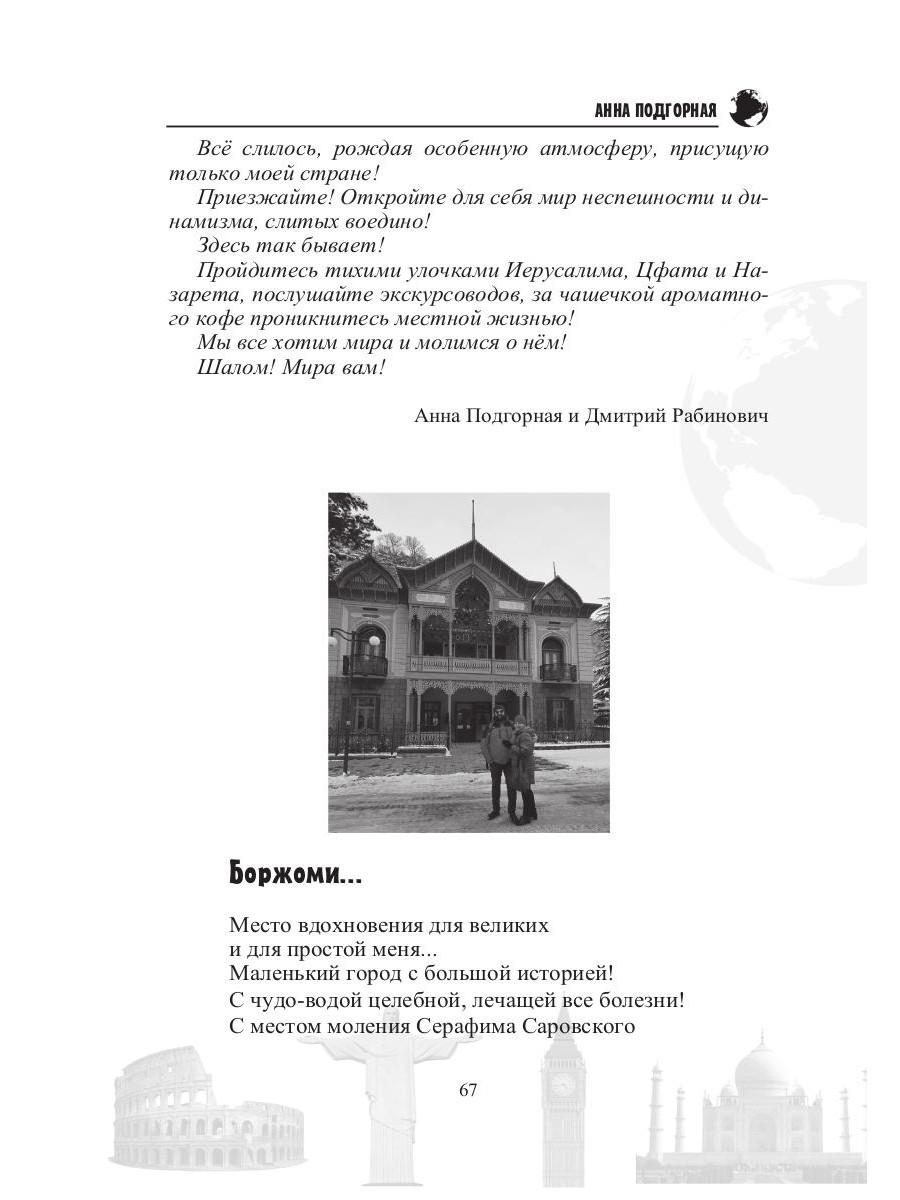 Провожатыми в этом путешествии станут поэты и писатели из разных уголков планеты - номинанты Международной премии мира. Они не только поделятся с читателями своими стихами и прозой, но и расскажут много интересного о родных и любимых городах и странах.