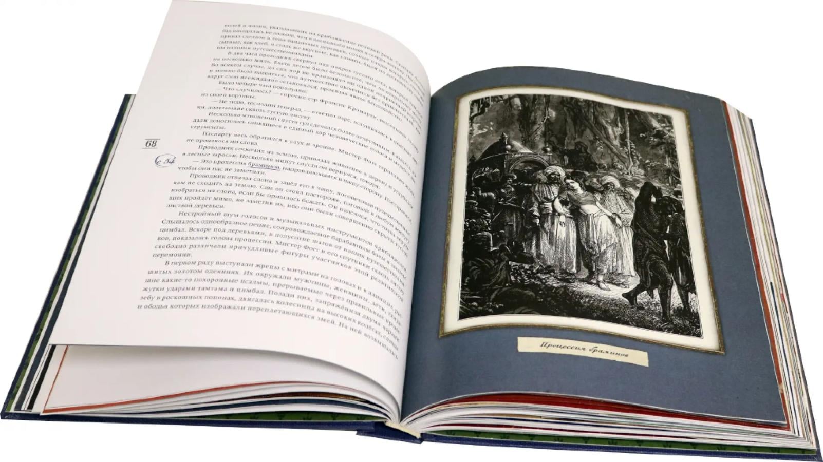 «Вокруг книги» - это лучшие произведения мировой литературы с подробным историко-бытовым комментарием. Комментарии расположены на тематических разворотах с многочисленными интерактивными элементами и объемными иллюстрациями. С героями этой книги, бесстрастным английским джентльменом Филеасом Фоггом и его слугой Жаном Паспарту, читатель обогнёт земной шар и увидит, каким был мир почти полтора века назад. И хотя путешественники слишком спешат вернуться в Лондон и выиграть пари, Жюль Верн так живо описывает разные страны и города, а комментарии и иллюстрации раскрывают столько любопытных подробностей, что стремительное путешествие становится захватывающие интересным. Тенистые сады Сингапура и шумные улицы Сан-Франциско, город мормонов и индийские джунгли, заснеженные просторы Небраски и чудесная долина Ганга - на тематических разворотах всё это можно изучить неспешно и внимательно, научиться отличать брахмана от кшатрия и вигвам от типи, разобраться в устройстве парусных судов, рассмотреть множество удивительных нарядов, причесок, повозок, жилищ и храмов и сверить маршрут с географическими картами XIX века. А еще: - Все необходимые географические карты - Достопримечательности трех континентов - Справочник начинающего моряка - Богиня Кали во всей пугающей красе - Объемная японская пагода - Советы опытных путешественников XIX века - Винтовой пароход и американский поезд в деталях - Игра «Путешествие вокруг света с Нелли Блай»| Издательство | Изд. Лабиринт Пресс |