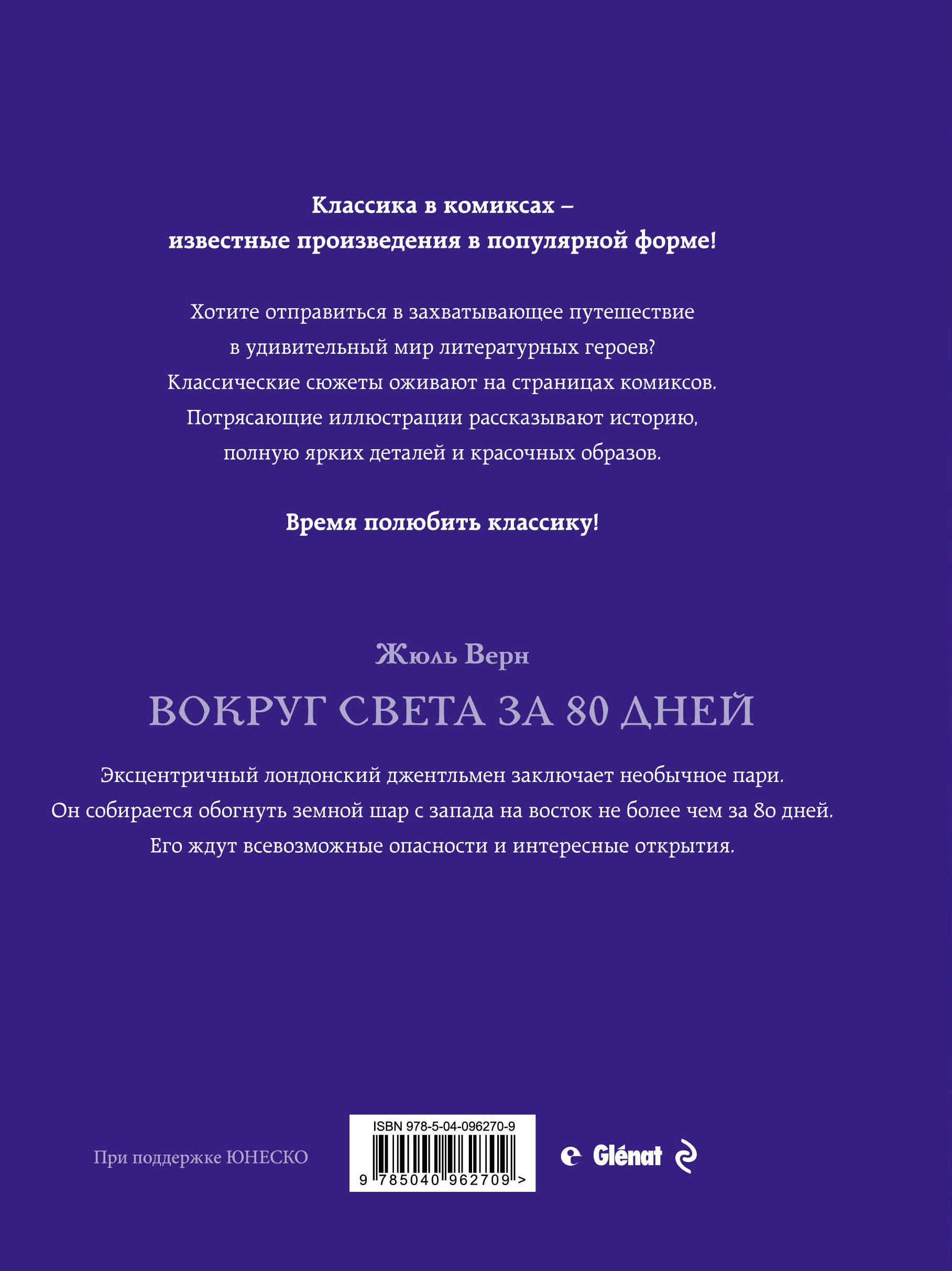 "Вокруг света за 80 дней" - полное опасных приключений кругосветное путешествие эксцентричного лондонского джентльмена и его слуги-француза, которое они предприняли в результате пари. Теперь в форме комикса! Данная графическая адаптация была разработана в сотрудничестве с Международной федерацией преподавателей французского языка и издана при поддержке Юнеско. Читателю предоставлена уникальная возможность отправиться в захватывающее литературное путешествие и погрузиться в удивительный мир оригинального произведения. В конце издания даны биография автора, комментарии к его творчеству, разъяснения исторического и литературного контекста.| Издательство | ООО "Издательство "Эксмо" |
