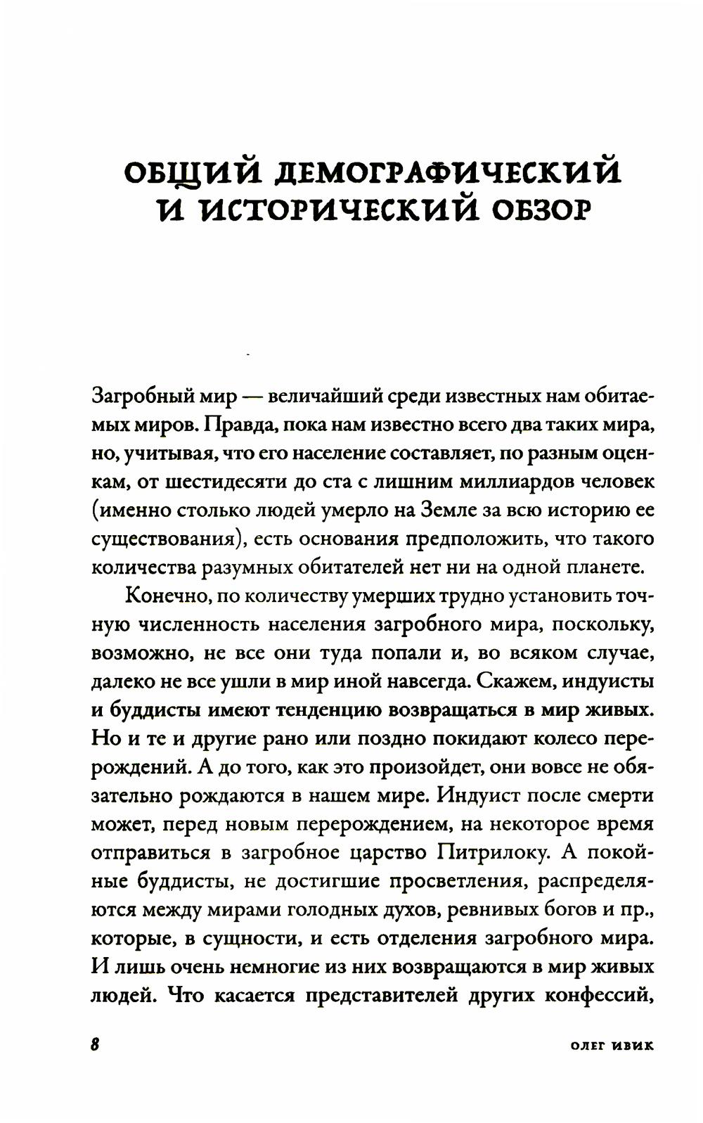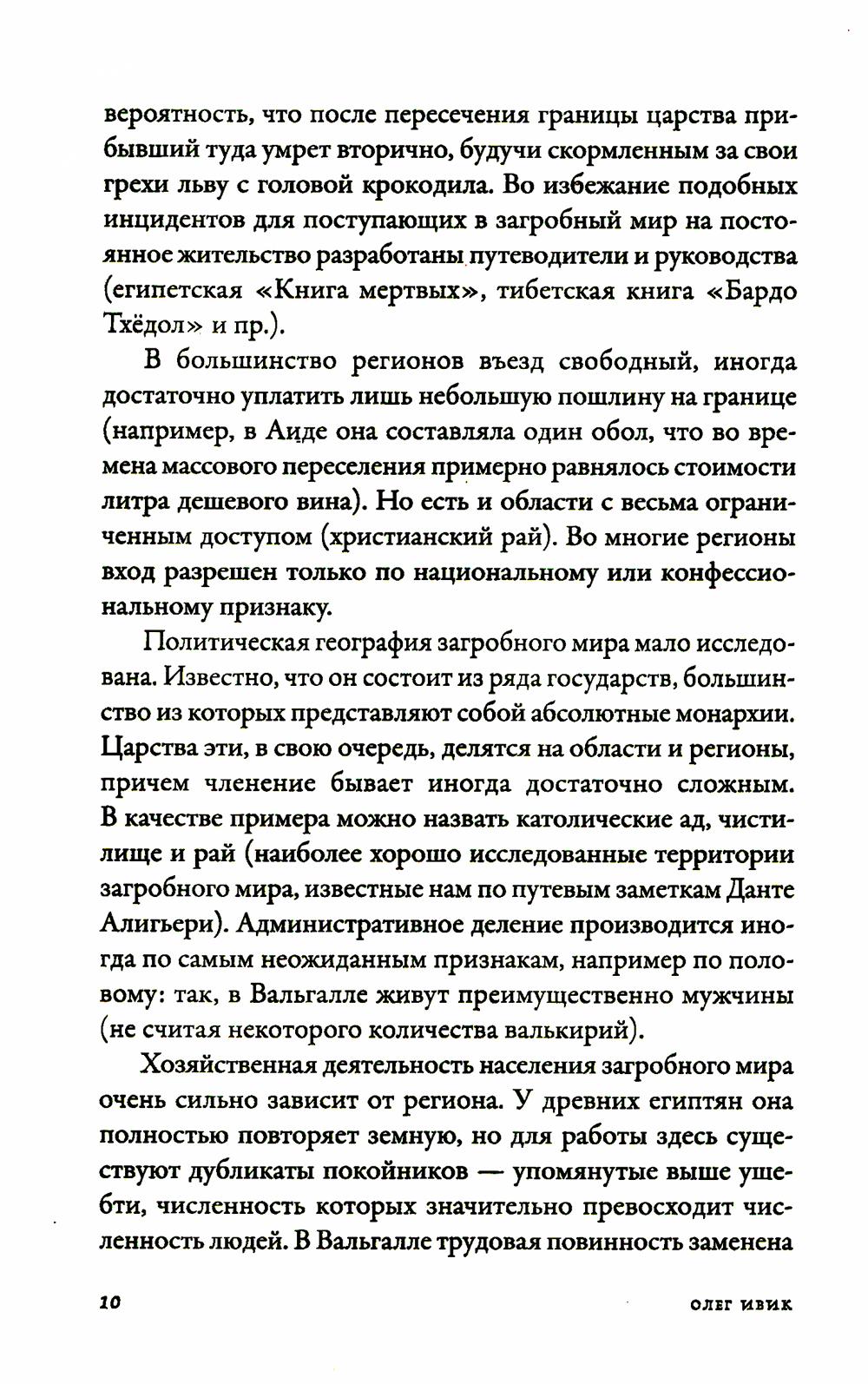 Население загробного мира Земли составляет сегодня около ста миллиардов человек. Они обитают в египетском Дуате и в шумерской стране Курнуги, в германо-скандинавской Вальгалле и в христианском раю... Между миром мертвых и миром живых всегда существовали тесные двусторонние связи. Зороастрийские жрецы с помощью наркотиков направляли в потустороннее царство своих послов. Мореплаватели Одиссей и Брендан достигали его на своих кораблях. Некоторые путешественники, подобно Данте Алигьери, оставляли подробные путевые заметки. Свой вклад в изучение загробной жизни внесла археология. Ольга Колобова и Валерий Иванов, пишущие под общим псевдонимом Олег Ивик, несколько лет работали в археологических экспедициях на юге России. Постоянно соприкасаясь с загробным миром, они задались вопросом: каковы же его политическая история, культура, география, флора и фауна?.. В результате их исследований получилась эта книга. В ней дается краткий историко-географический обзор самых крупных государств загробного мира с древнейших времен до наших дней.| Издательство | Альпина нон-фикшн |