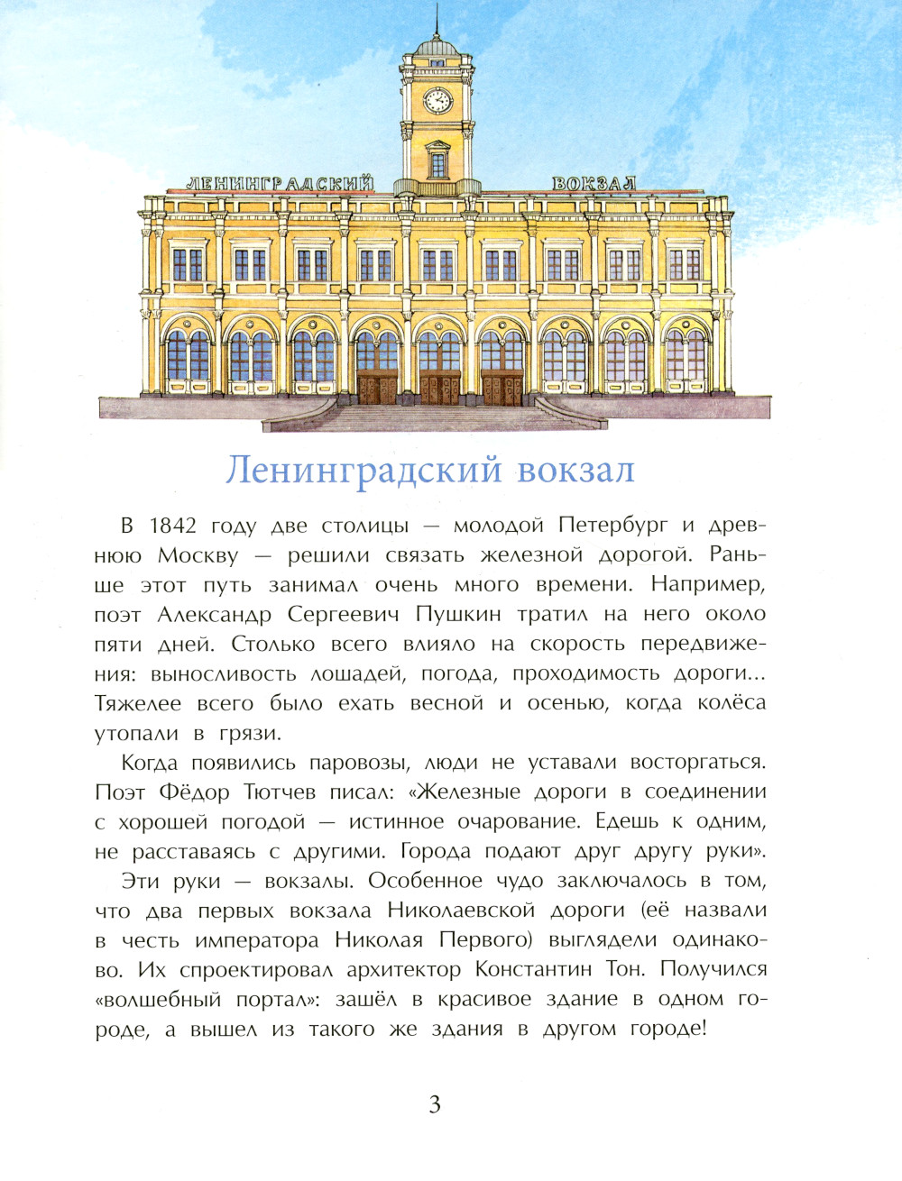 Железная дорога - это целый мир: рельсы, шпалы, платформы, перегоны и, конечно, вокзалы. В нашем путешествии мы побываем на всех вокзалах Москвы - от самого старинного Ленинградского до построенного недавно Восточного. Узнаем об истории их строительства, архитектурных стилях и самых интересных деталях, которые делают каждый из московских вокзалов уникальным.