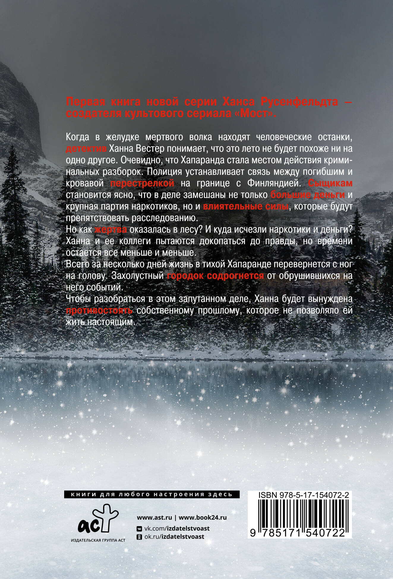 Когда в желудке мертвого волка находят человеческие останки, детектив Ханна Вестер понимает, что это лето не будет похоже ни на одно другое. Очевидно, что Хапаранда стала местом действия криминальных разборок. Полиция устанавливает связь между погибшим и кровавой перестрелкой на границе с Финляндией. Сыщикам становится ясно, что в деле замешаны не только большие деньги и крупная партия наркотиков, но и влиятельные силы, которые будут препятствовать расследованию. Но как жертва оказалась в лесу? И куда исчезли наркотики и деньги? Ханна и ее коллеги пытаются докопаться до правды, но времени остается все меньше и меньше. Всего за несколько дней жизнь в тихой Хапаранде перевернется с ног на голову. Захолустный городок содрогнется от обрушившихся на него событий. Чтобы разобраться в этом запутанном деле, Ханна будет вынуждена противостоять собственному прошлому, которое не позволяло ей жить настоящим.| Издательство | ИЗДАТЕЛЬСТВО "АСТ" |