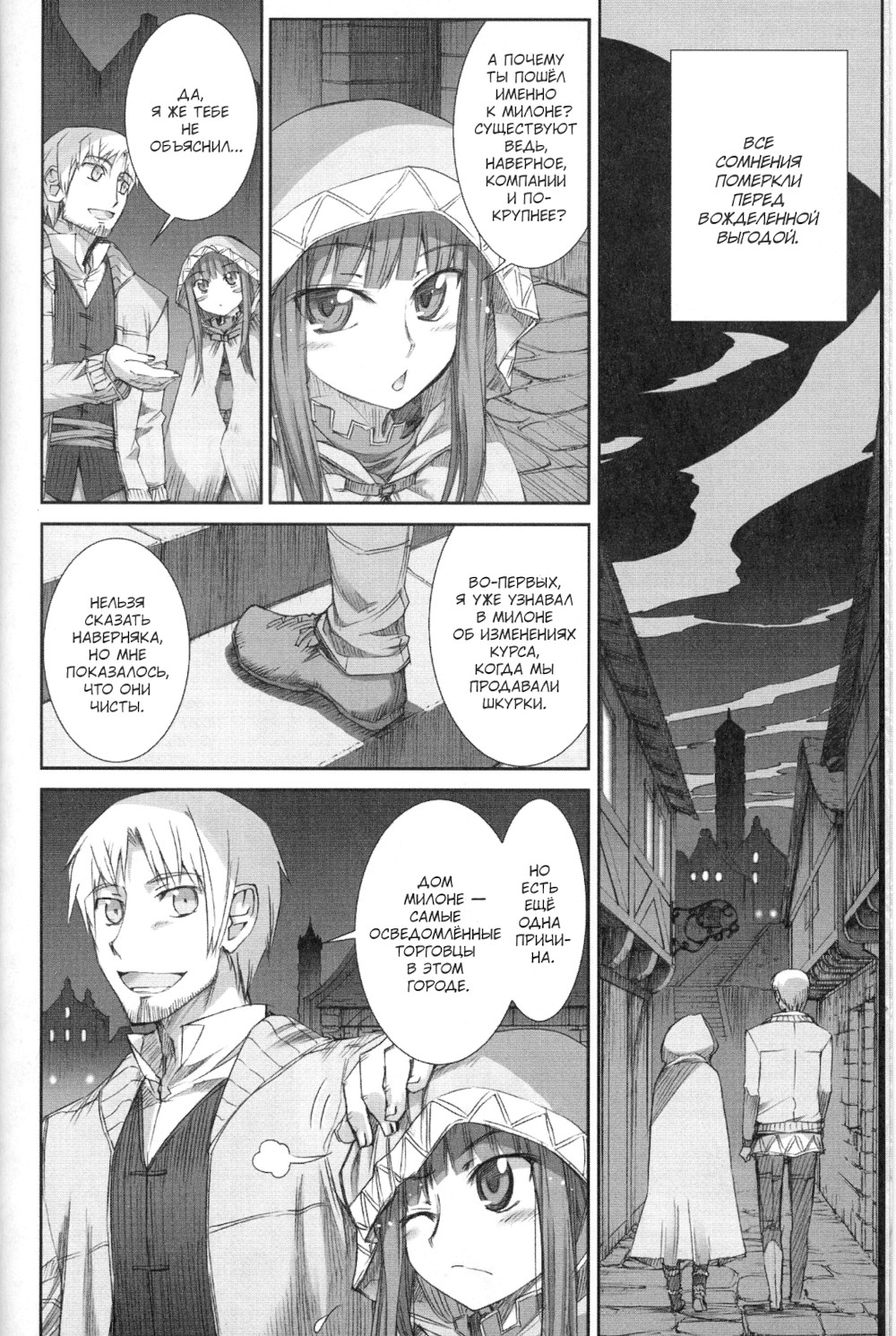 Лоуренс и Холо начинают понимать, что оказались втянуты в масштабную финансовую махинацию. Чтобы извлечь из неё выгоду, они обращаются за помощью к торговому дому Милоне, не догадываясь, какой опасностью грозит этот союз.| Издательство | ИД Истари Комикс |