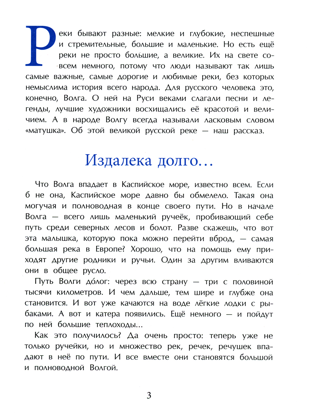 Великая русская река Волга начинается с ручейка среди лесов и болот, течёт через всю страну и, становясь всё более широкой и полноводной, в конце своего пути впадает в Каспийское море. Какие реки вливаются в Волгу, какие рыбы, птицы, звери здесь водятся, какие народы живут на волжских берегах? Живописные пейзажи, события давней истории, старинные города - всё это Волга-матушка.| Издательство | Настя и Никита |