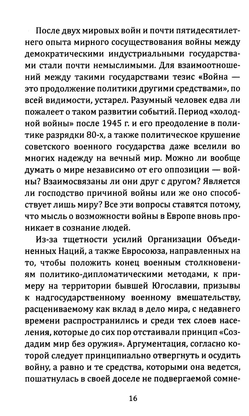 Книга современного немецкого писателя, философа и публициста X. Хофмайстера посвящена осмыслению феномена войны: автор выявляет и прослеживает неразрывную связь между войной, политикой и государством. Однако вопреки теории Клаузевица, где война понимается как «продолжение политики иными средствами», Хофмайстер доказывает, что война сегодня - не средство политики, а, напротив, ее отрицание. Бессилие политики и политиков порождает войну.| Издательство | Родина |