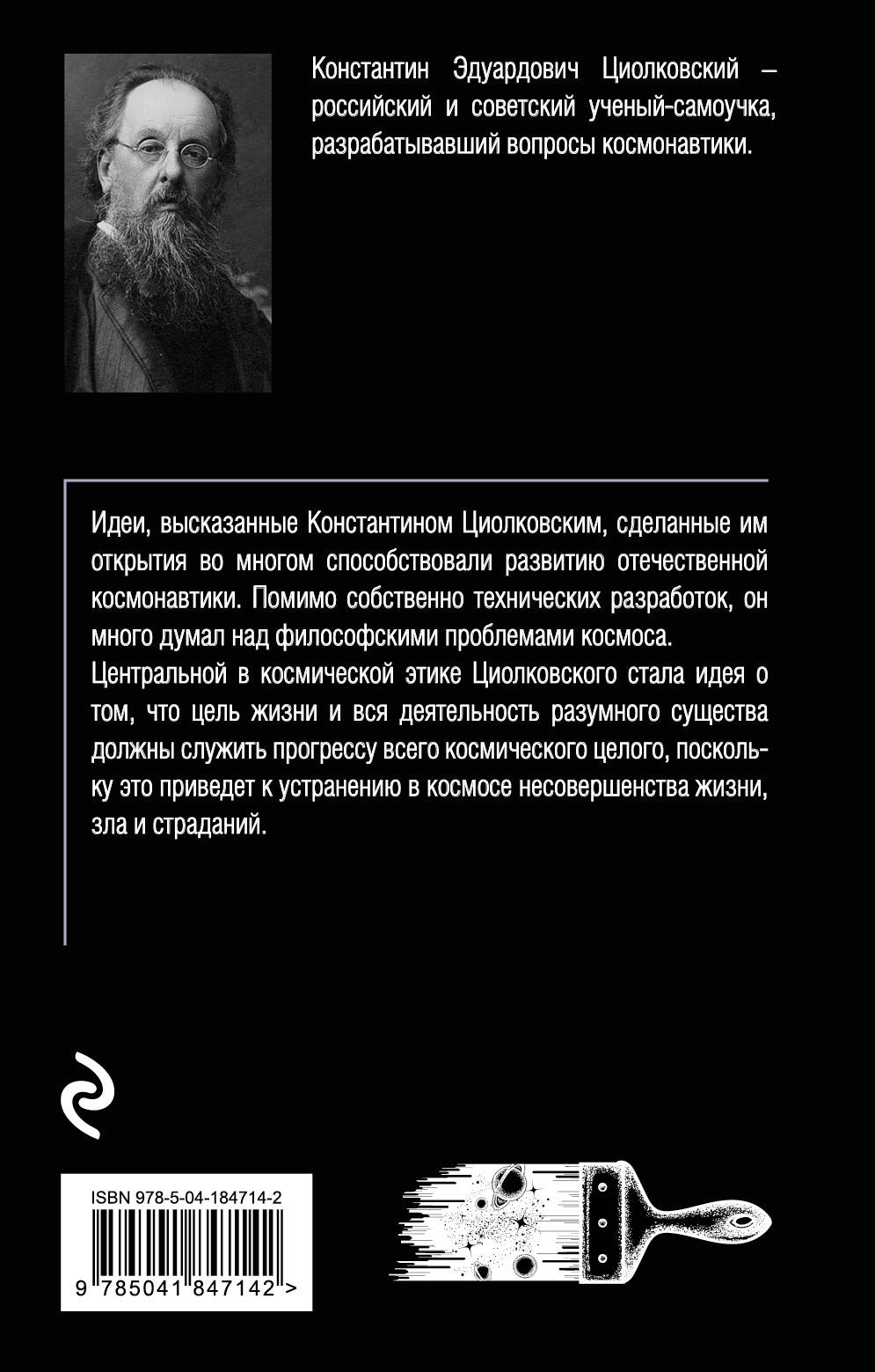 Константин Эдуардович Циолковский - российский и советский ученый-самоучка, разрабатывавший вопросы космонавтики, занимался освоением космоса. Идеи, высказанные Константином Циолковским, сделанные им открытия во многом способствовали развитию отечественной космонавтики. Помимо собственно технических разработок, он много думал над философскими проблемами космоса. Центральной в космической этике Циолковского стала идея о том, что цель жизни и вся деятельность разумного существа должны служить прогрессу всего космического целого, поскольку это приведёт к устранению в космосе несовершенства жизни, зла и страданий.| Издательство | ООО "Издательство "Эксмо" |