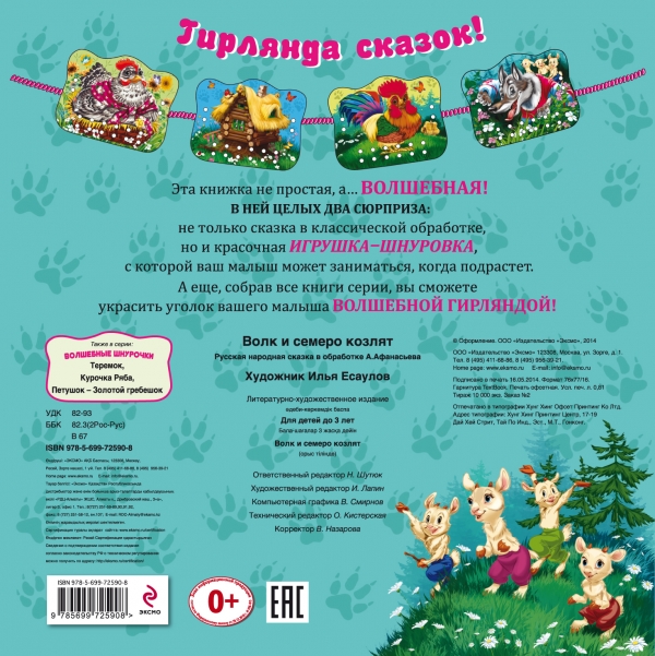Эта книжка не простая, а… волшебная! В ней целых два сюрприза: не только сказка в классической обработке, но и красочная игрушка-шнуровка, с которой ваш малыш может заниматься, когда подрастет.