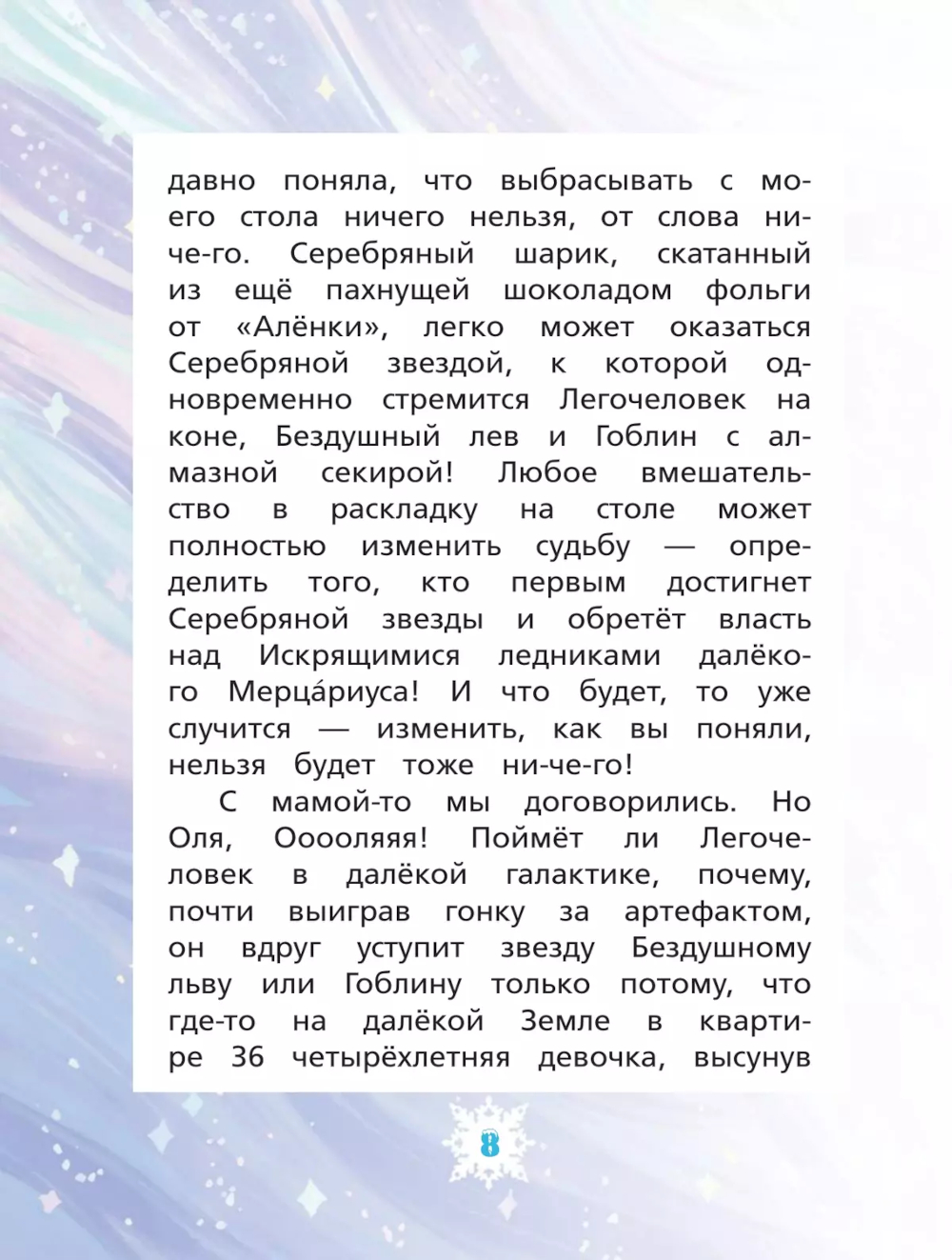 Художественное произведение входит в серию «Время фантазий». Книга наполнена магией и головокружительными приключениями и направлена на формирование эмоционального интеллекта детей. Эта волшебная сказка не только о магии, но и о взаимоотношениях в семье.| Издательство | Просвещение |