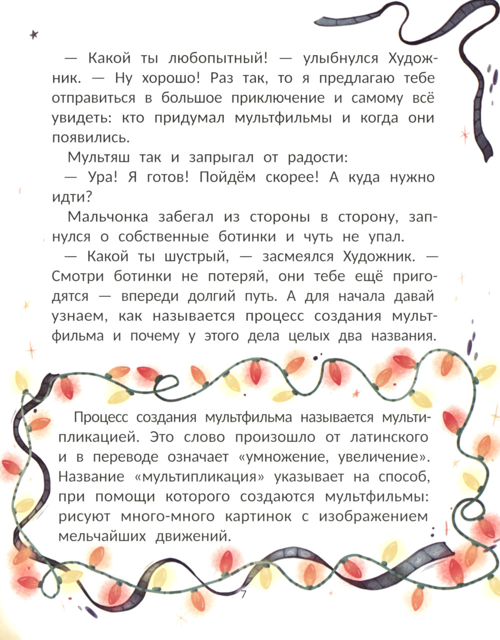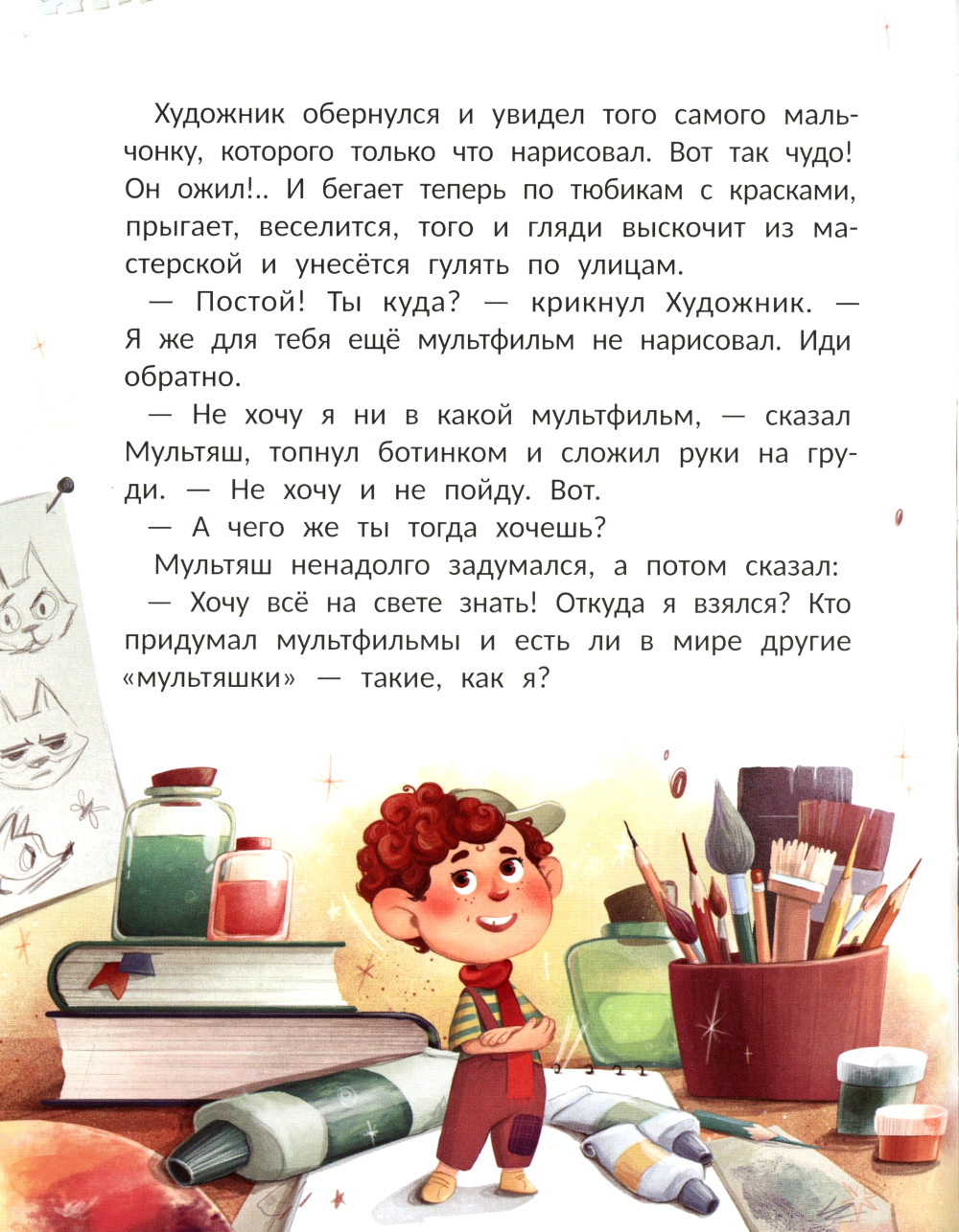 «Волшебная история мультфильма» - это увлекательная и познавательная детская книга, которая рассказывает о захватывающем мире анимации. Главный герой - художник-мультипликатор, который создаёт маленького и любознательного персонажа - Мультяша. Здесь и начинается их удивительное путешествие в историю мультфильма. Вместе с мультипликатором Мультяш узнаёт много интересного о процессе создания анимации. Мультипликатор делится своими знаниями о том, как анимационные фильмы создавались в прошлом, рассказывает о знаменитых людях, которые внесли свой вклад в эту сферу, и о самых известных мультипликационных студиях, которые стали легендами. Книга «Волшебная история мультфильма» с увлекательным повествованием и атмосферными иллюстрациями познакомит ребёнка с историей анимационной индустрии. А также будет полезна для развития воображения, расширения кругозора и вдохновит на творчество!