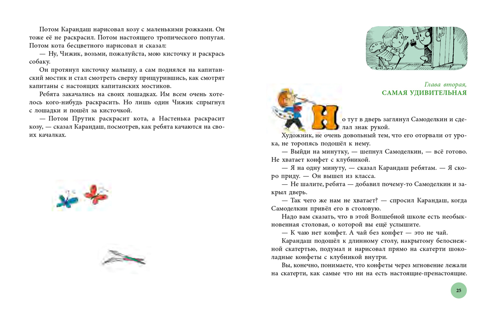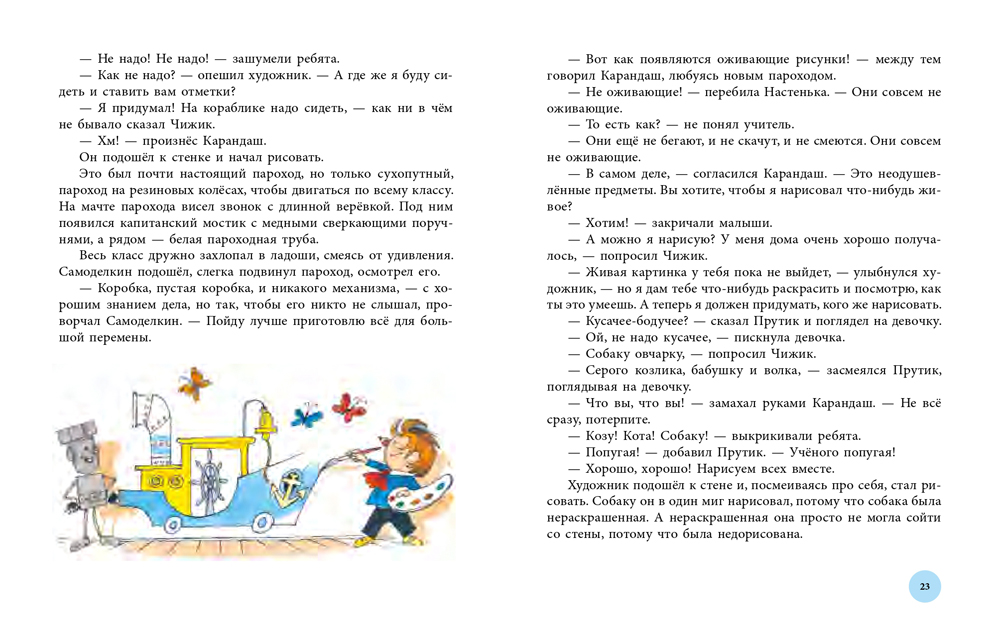 Добро пожаловать в необыкновенную и знаменитую школу! Главный учитель Карандаш и мастер на все руки Самоделкин приглашают на уроки Фантазии, Смеха и Необыкновенных путешествий. В этой школе учиться одно удовольствие: из отметок ставят только пятёрки, на завтраки дают конфеты, а учителя - самые настоящие волшебники. Однажды среди учеников появился новенький мальчик, даже не мальчик, а какое-то чучело-бабучило - до того он был лохматым и чумазым. «Разве может такой учиться вместе с нами?!» - смеялись дети. Но доброму Карандашу было не до смеха - дразнилкам в его школе никогда не учили! И он решил преподать самый главный урок - урок Доброты. P. S. А в это время к школе подбирались морские пираты... Книга с иллюстрациями Виктора Чижикова.| Издательство | Акварель |