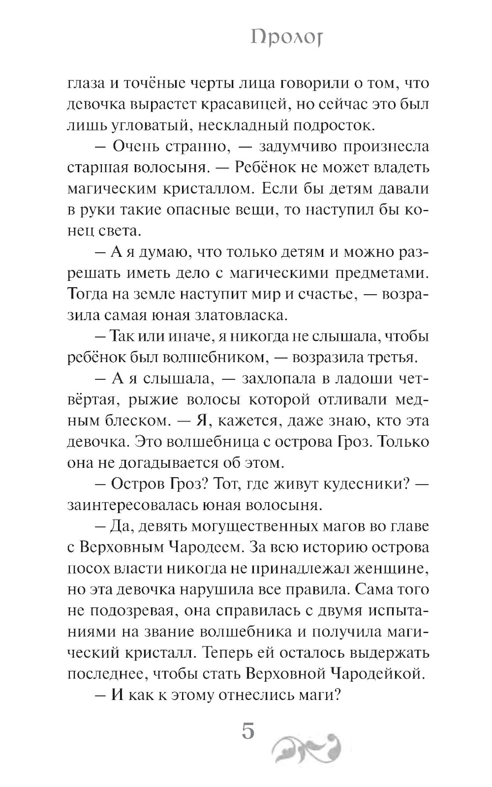 Главной героине приключенческого романа Тамары Крюковой «Волшебница с острова Гроз» четырнадцать лет. Она своенравна, независима, и у неё полно проблем, как у любой девчонки в её возрасте. Но она не ведает, что её главная проблема в том, что она наделена сильнейшим магическим даром. Её ждут заговоры, лишения и опасности, прежде чем она узнает о том, что носит у себя на груди заветный оберег, - знак власти. Она волшебница. Ей по силам многое, а она мечтает стать простой смертной, потому что знает, сколь тяжко бремя могущества.| Издательство | Аквилегия-М |