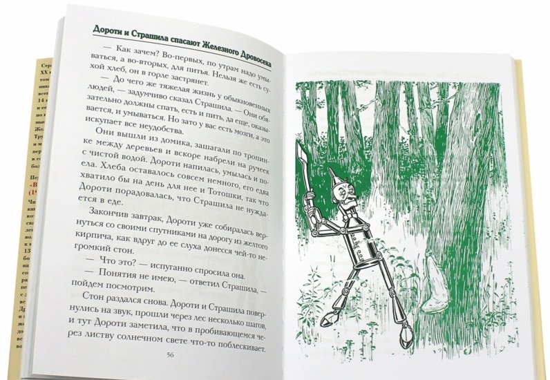 Читателей ждет встреча с первой книгой длинной серии, сюжет которой стал одной из величайших сказок XX века, он породил цепочку легенд о крае вечной юности, волшебной Стране Оз. Эта книга к которой только Баум написал 13 продолжений, позднее обросла более чем двумя сотнями вариаций на ту же тему. Но именно в этой, созданной в 1900 году книге, было рассказано, как девочку Дороти и ее песика, Тото, смерч унес вместе с домиком в Страну Оз. Там она встретила Страшилу, Железного Дровосека и Трусливого льва, и пошла с ними по дороге из желтого кирпича, чтобы добраться до Изумрудного города, чтобы встретиться там с великим волшебником.