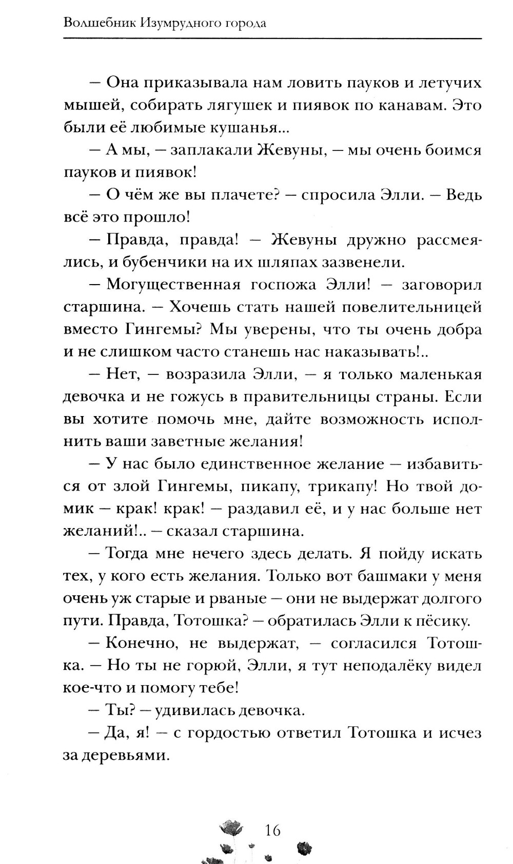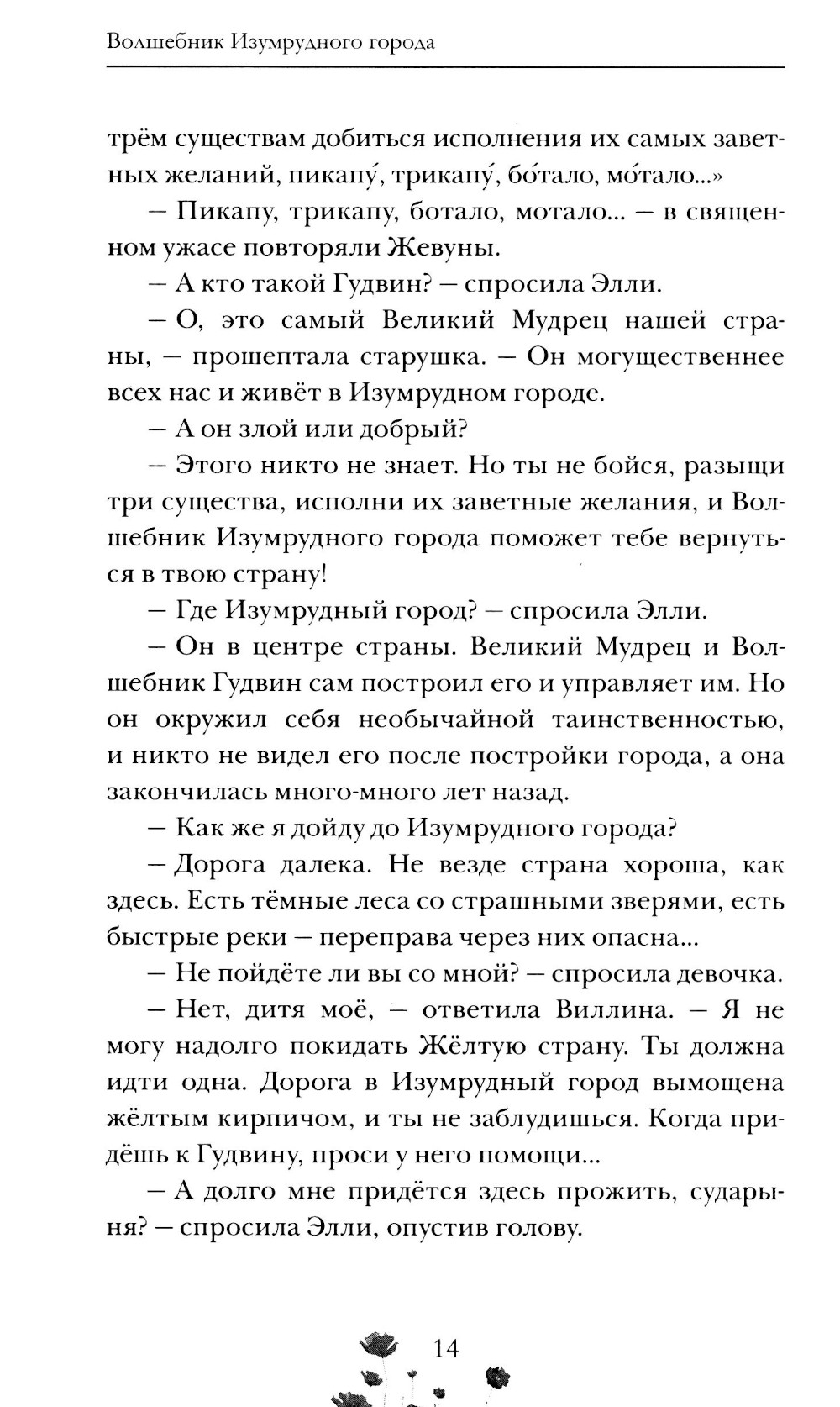 Девочка Элли из пыльной Канзасской степи даже не подозревала, что где-то на свете есть удивительная Волшебная страна, где звери и птицы, соломенные чучела и железные дровосеки умеют говорить. Но однажды ураган унёс её домик далеко-далеко от родных мест, и теперь, чтобы вернуться домой, ей предстоит отправиться в Изумрудный город - да не одной, а с верным псом Тотошкой, Страшилой, Железным Дровосеком и Трусливым Львом. На пути друзей ждёт множество невероятных приключений, и только искренняя дружба, верность и взаимная выручка помогут им преодолеть все преграды и найти волшебника Гудвина, который исполняет заветные желания…| Издательство | РОСМЭН |