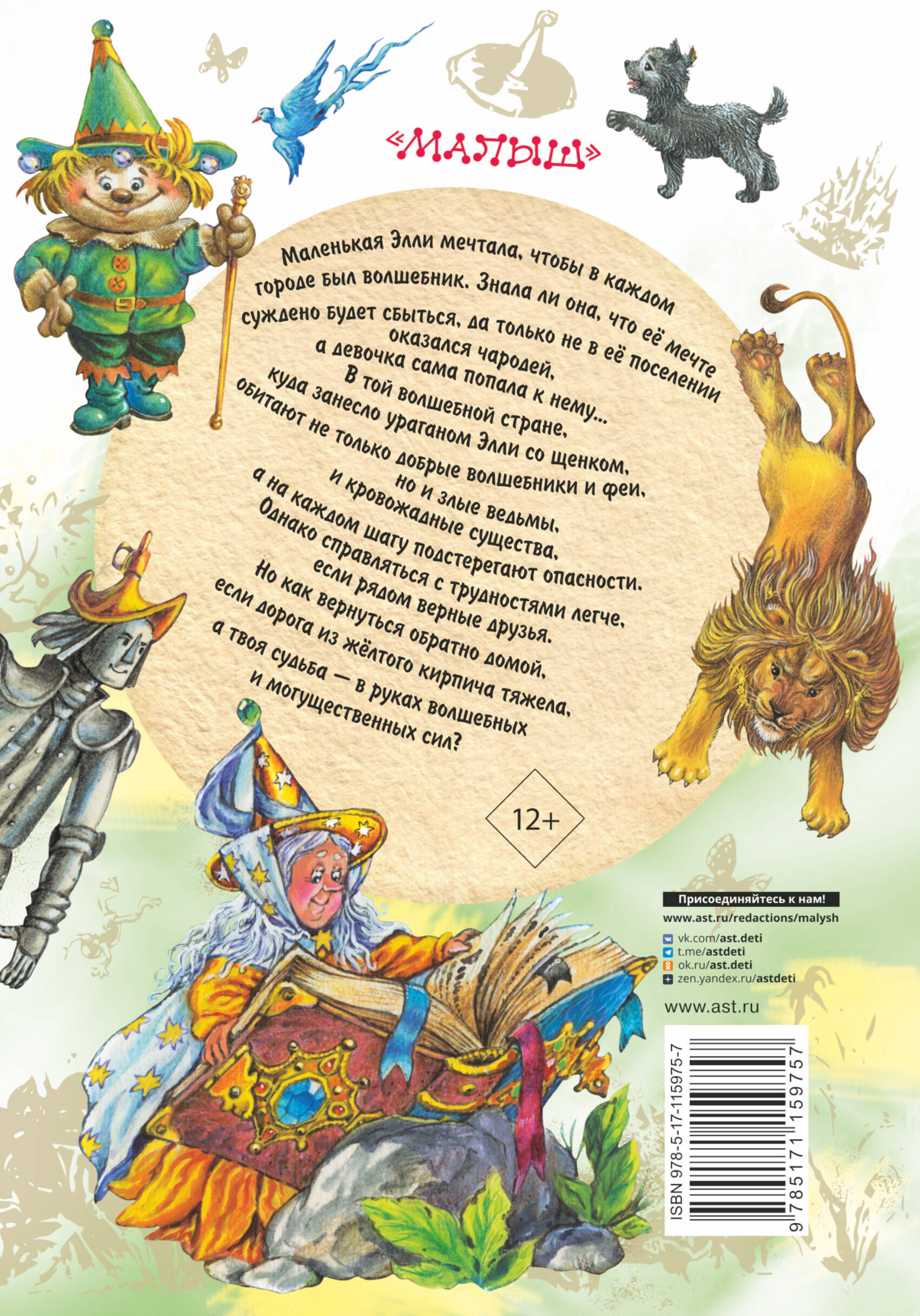 Нестареющая сказочная повесть А. Волкова, любимая миллионами детей и взрослых! Впервые авторская переработка сказки американского классика Л.Ф. Баума «Удивительный волшебник из страны Оз» увидела свет в 1939 году, получив одобрение С. Я. Маршака. Книга сразу же стала одной из любимых, знаковых сказок для советских детей - во время войны многие даже увозили её с собой в эвакуацию как самое необходимое. С тех пор история девочки Элли, унесенной ураганом в волшебную страну, несколько раз переписывалась автором, уходя всё дальше от оригинала Баума. Однако в центре сюжета по-прежнему оставались приключения Элли, железного Дровосека, Страшилы и других героев по пути к замку великого и ужасного Гудвина. Культовая история о взрослении, самоопределении и дружбе - захватывающее чтение, которое надолго оставит светлый отпечаток в душе каждого ребёнка. Авторы детальных и ярких иллюстраций - популярные художники Александр и Ирина Чукавины. Для среднего школьного возраста.| Издательство | ИЗДАТЕЛЬСТВО "АСТ" |