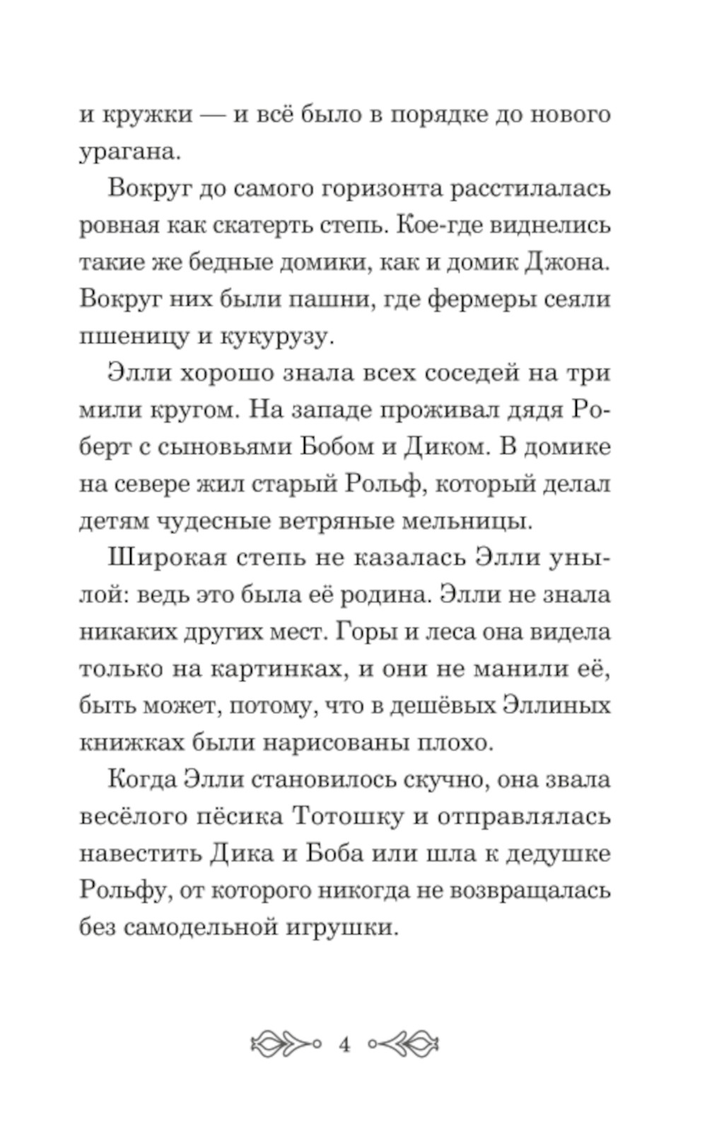 Случайно разыгравшийся ураган переносит Элли и ее верного пса в Волшебную страну. Вместе с новыми друзьями - Страшилой, Железным Дровосеком и Львом - Элли предстоит отправиться к Великому Волшебнику, чтобы найти способ вернуться домой в Канзас. На своем пути Элли сталкивается с различными испытаниями, преодолевает страхи и открывает в себе силы, о которых не подозревала. Книга наполнена добротой, дружбой и важными уроками о смелости и вере в себя. Каждый персонаж символизирует различные качества, что делает историю глубокой и многогранной. После прочтения книга оставляет читателя с мыслью о том, что настоящая сила - всегда внутри нас. Рекомендуется школьной программой для внеклассного чтения в начальных классах.