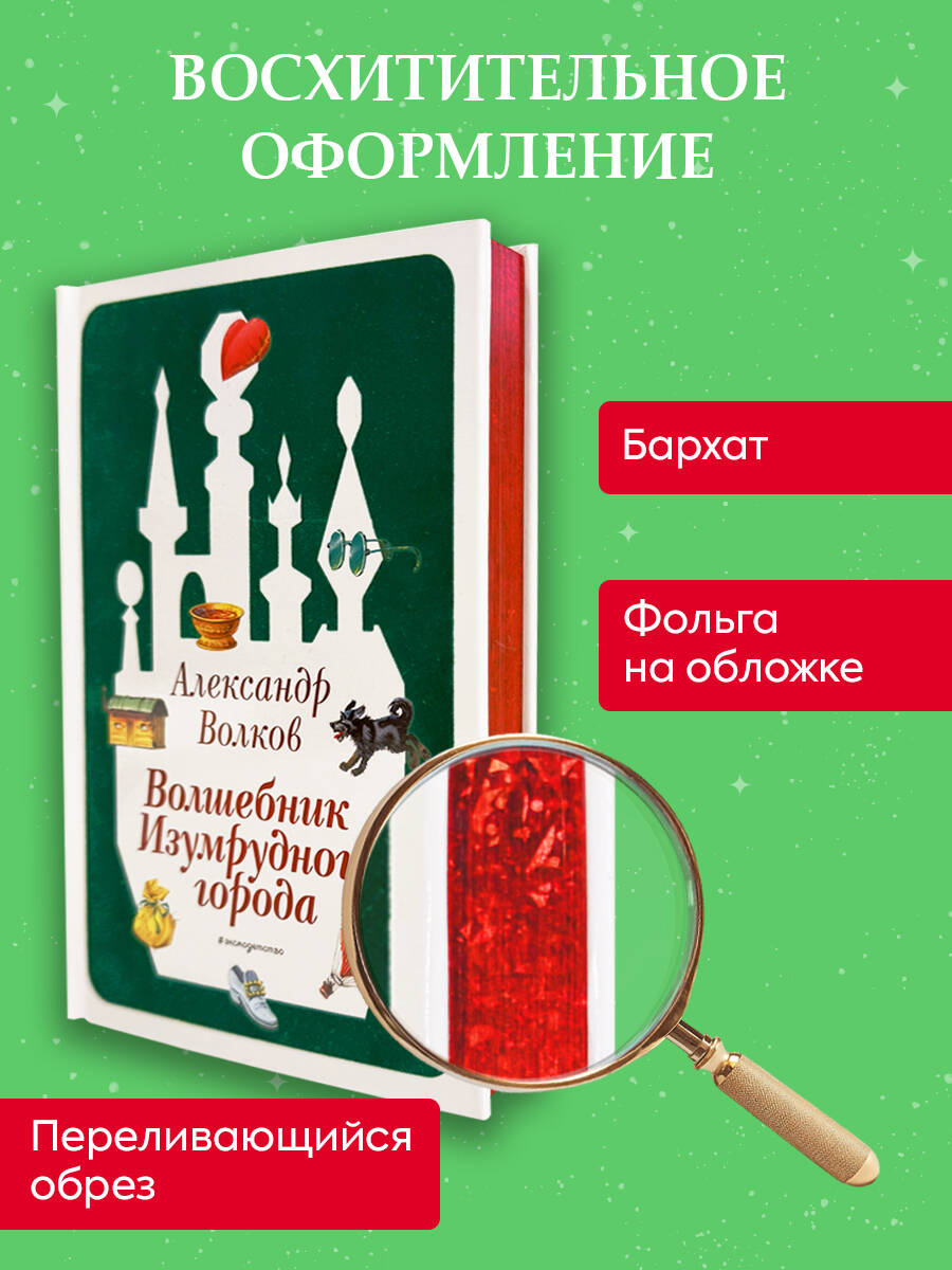 Знаменитый приключенческий цикл Александра Волкова о Волшебной стране и её необыкновенных жителях - в эксклюзивном подарочном оформлении! Твёрдый переплёт с цветным бархатным лаком и тиснением фольгой. Фольгированный обрез. Запечатанные форзацы. Поэкземплярное целлофанирование. Блок текста на плотной белой бумаге (офсет). Полный текст произведения. «Волшебник Изумрудного города» - первая книга одноименного цикла. Переведена на 13 языков (в том числе английский и немецкий), выдержала свыше 50 переизданий. Небывалый ураган уносит маленькую девочку Элли и её собачку Тотошку в Волшебную страну. Чтобы вернуться домой в Канзас, Элли должна помочь трём жителям сказочного мира выполнить их заветные желания. Девочка, собачка и трое их новых друзей отправляются к правителю Изумрудного города, Великому и Ужасному Гудвину. Красочные, выразительные иллюстрации известного петербургского художника Владимира Канивца раскроют перед читателями самые потаённые уголки Волшебной страны и познакомят с её необыкновенными обитателями.| Издательство | ООО "Издательство "Эксмо" |