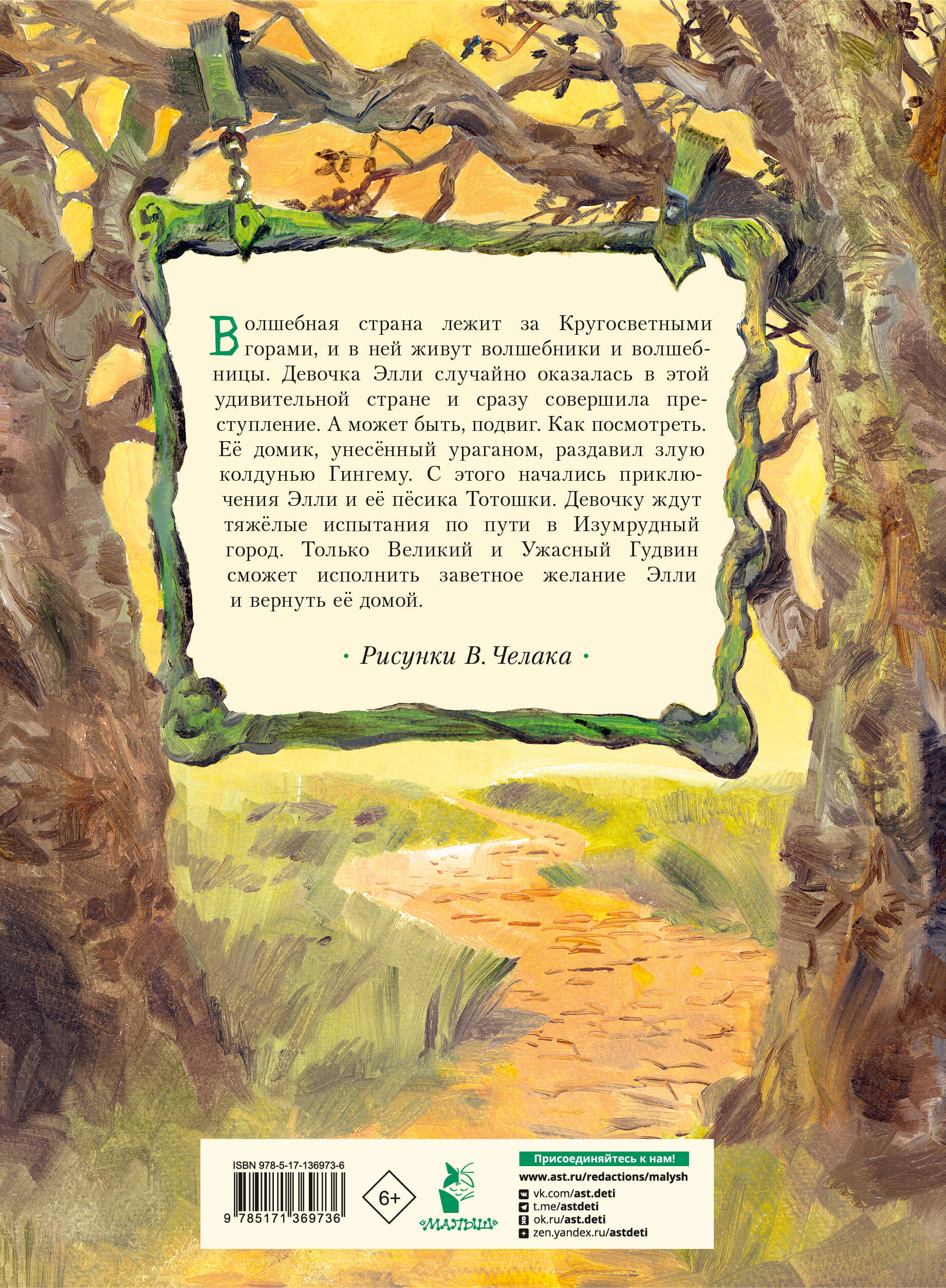 Волшебная страна лежит за Кругосветными горами и в ней живут волшебники и волшебницы. Девочка Элли случайно оказалась в этой удивительной стране и сразу совершила преступление. А может быть подвиг. Как посмотреть. Её домик свалился на злую колдунью Гингему. С этого начались приключения Элли и её пёсика Тотошки. Девочку ждут тяжёлые испытания по пути в Изумрудный город. Только Великий и Ужасный Гудвин сможет исполнить заветное желание Элли и вернуть её домой.| Издательство | ИЗДАТЕЛЬСТВО "АСТ" |