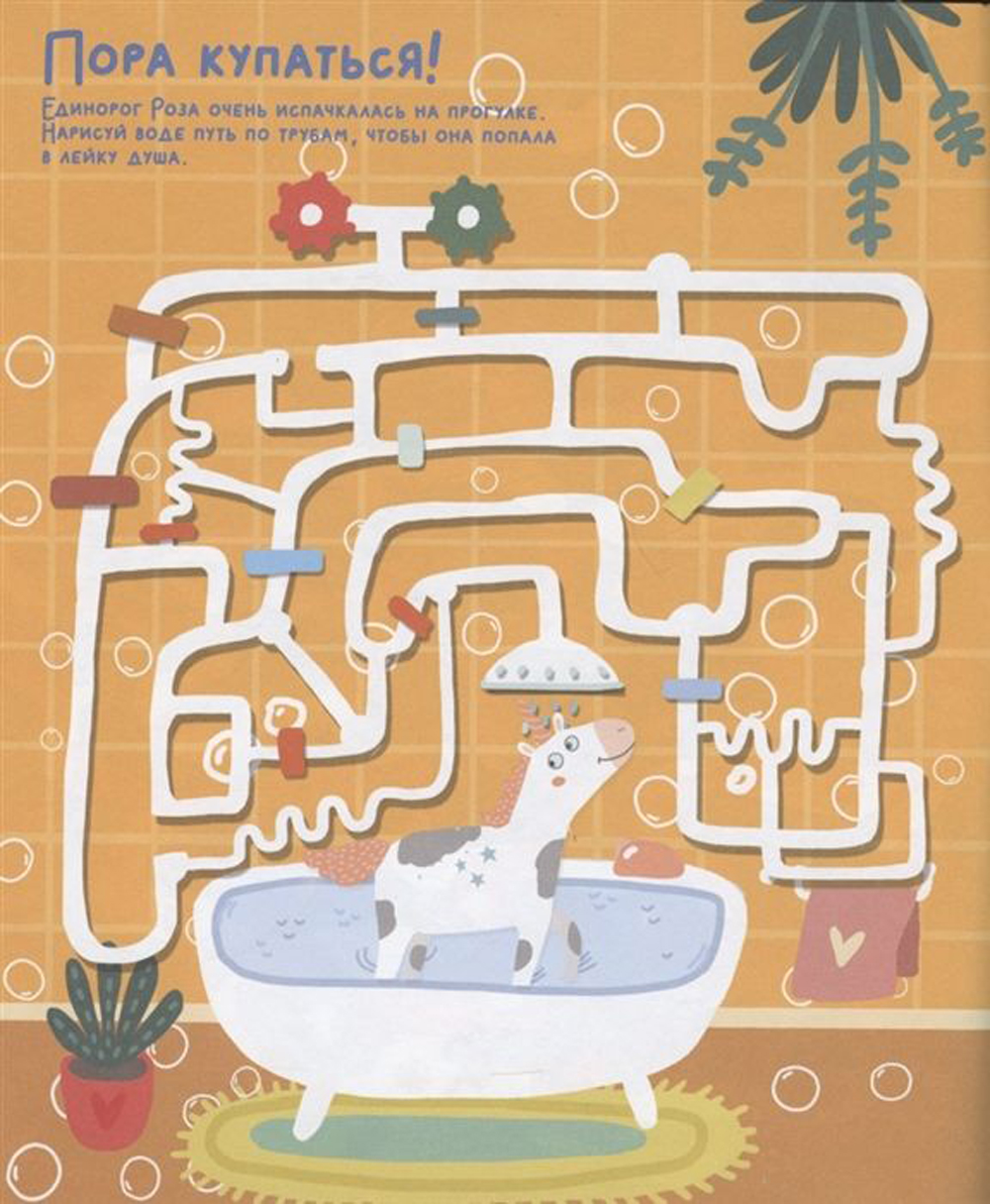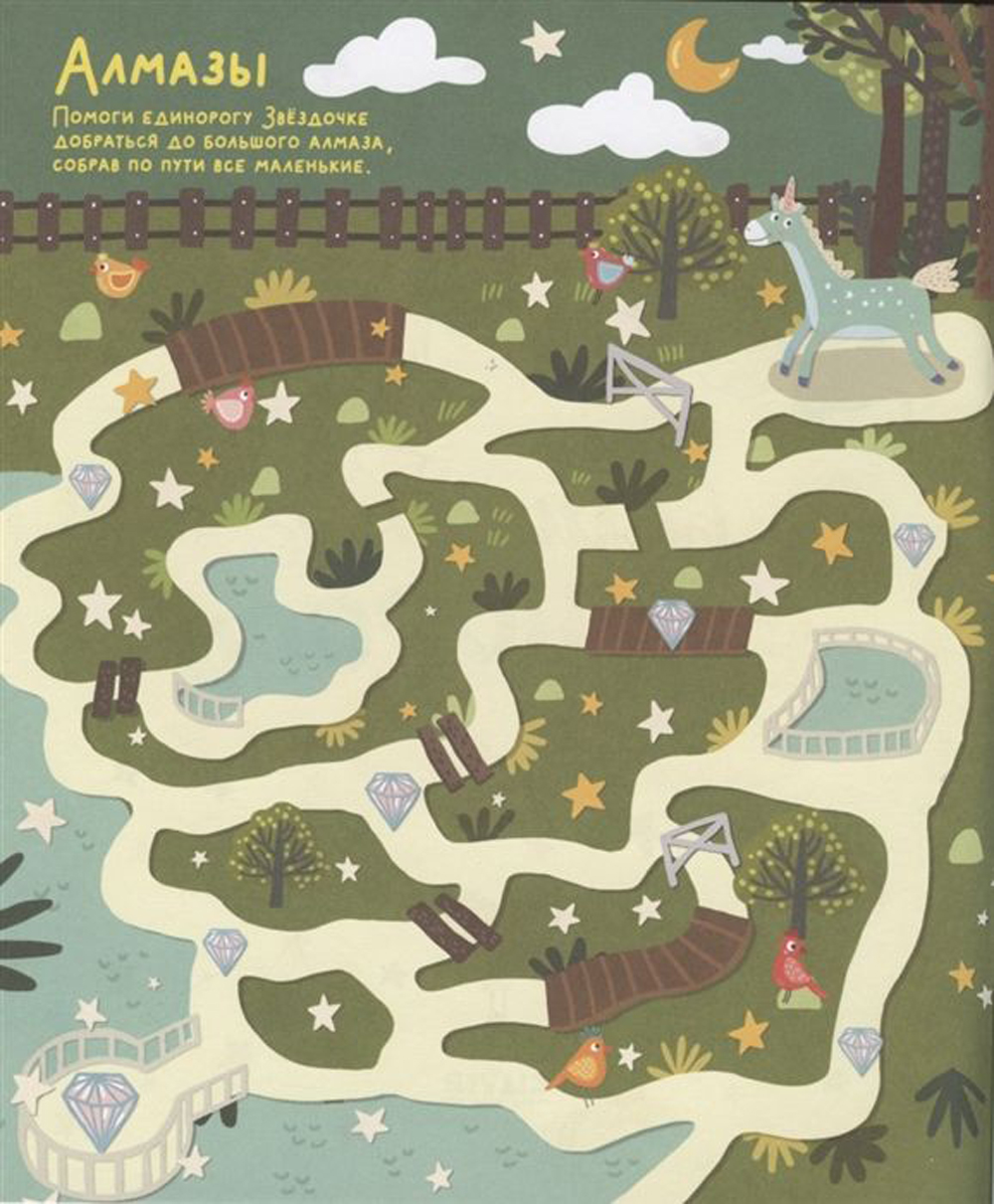 По бродилкам и лабиринтам вы дойдёте до волшебных садов, побываете в замках и покатаетесь с весёлыми единорогами на радуге. Вам понадобятся цветные карандаши или фломастеры, чтобы устроить небольшое соревнование на ловкость и сообразительность! Вперёд!
