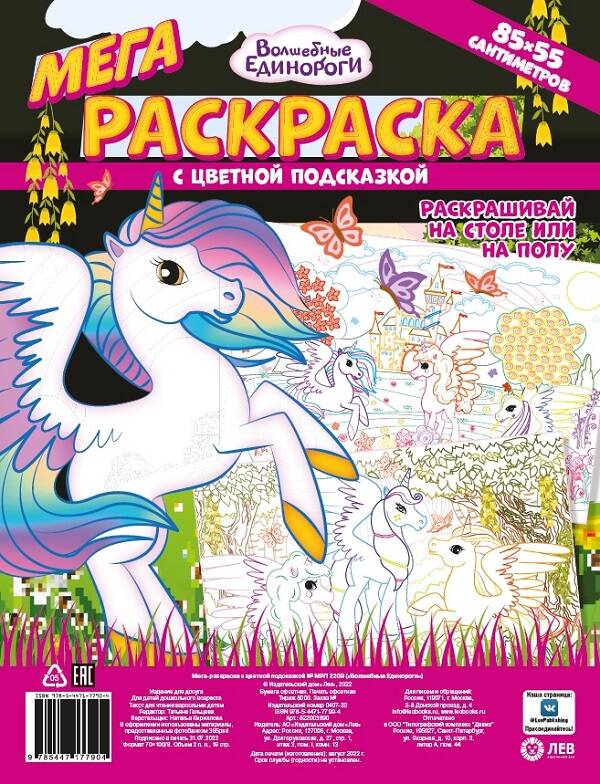 Аннотация: Волшебные Единороги. N МРП 2209. Мега-раскраска с цветной подсказкой