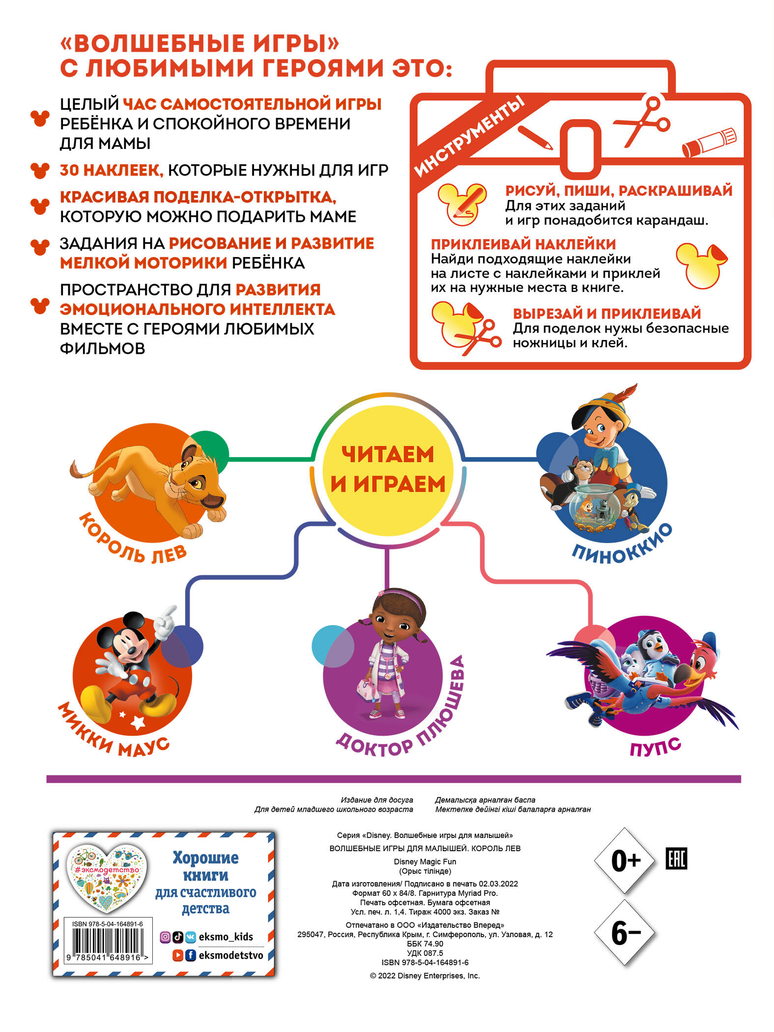Неповторимая атмосфера волшебства, встреча с любимыми персонажами, увлекательные игры, запутанные лабиринты, весёлые истории… Да просто невозможно оторваться от этой книжки! Вы уже знакомы с забавными лучшими друзьями - пингвином Пипом и фламинго Фрэдди? Им не терпится поиграть с вами! А ещё вас ждут Пиноккио, доктор Плюшева и Микки Маус... Будет очень весело!| Издательство | Эксмо |
